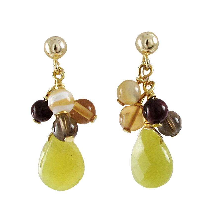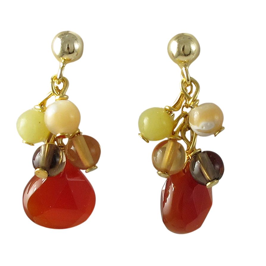 Assorted Semi Precious Stones On Gold Filled Ball Post Earrings -0.98"