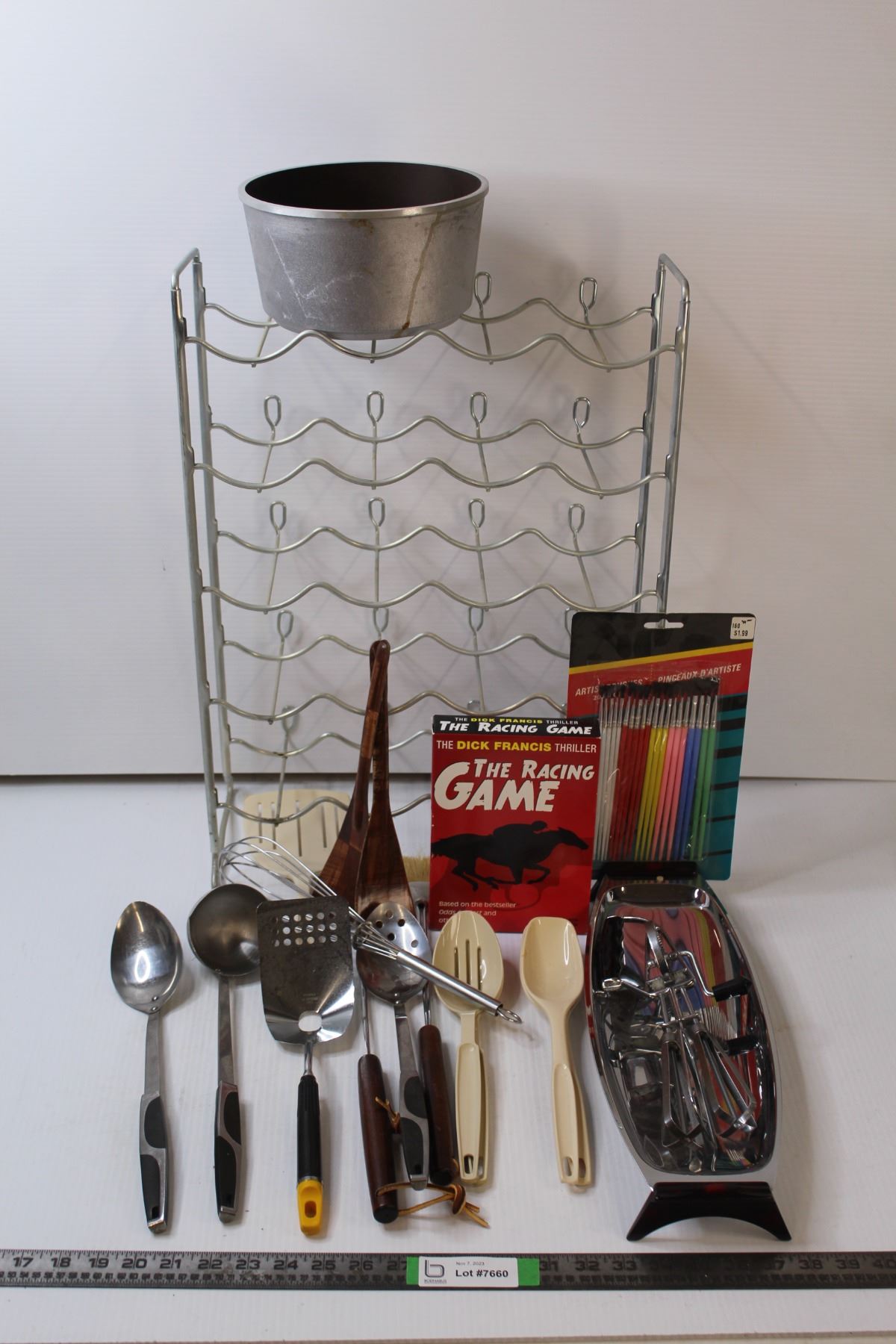 Assorted Serving Utensils / Wine Rack / Landscape Posters