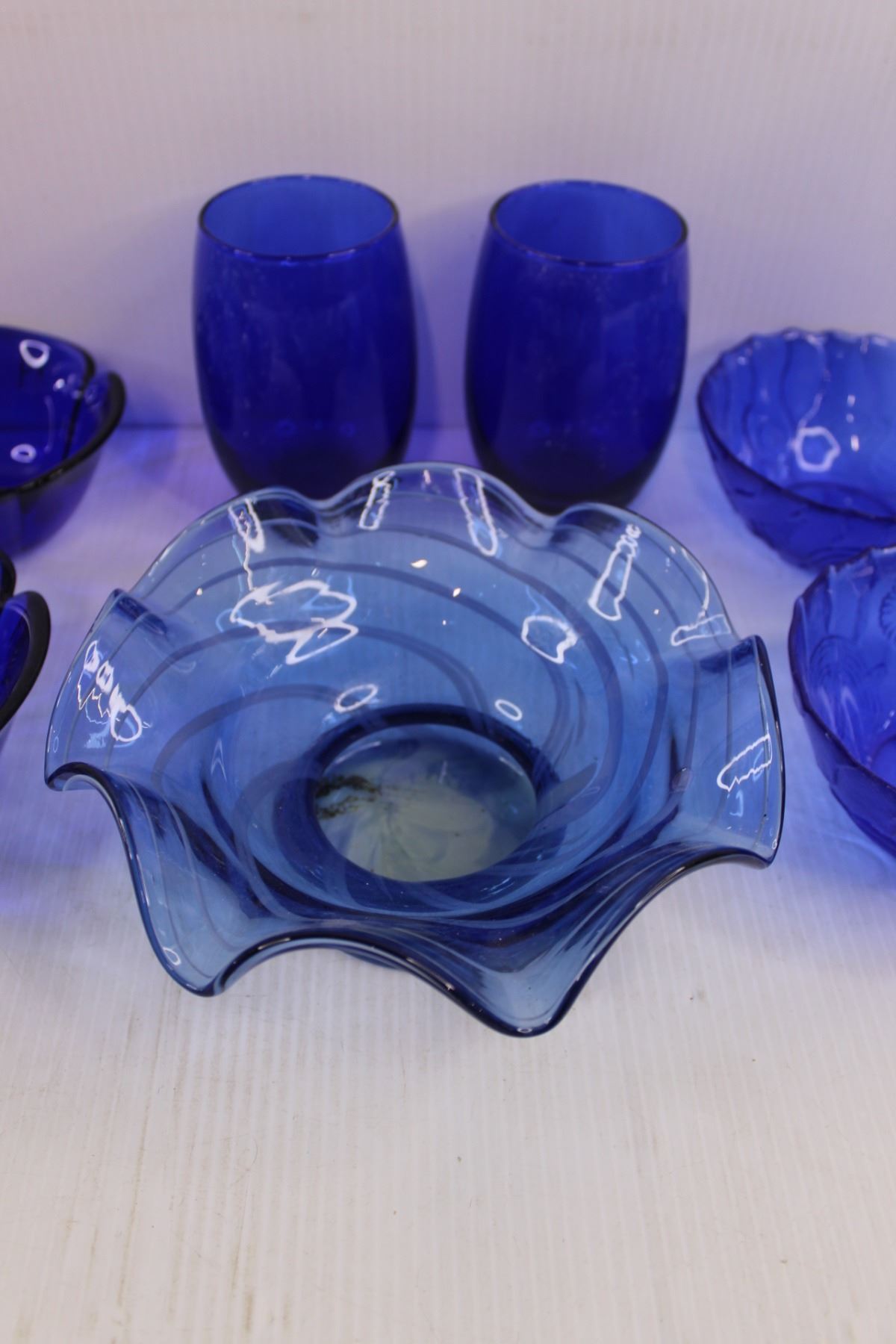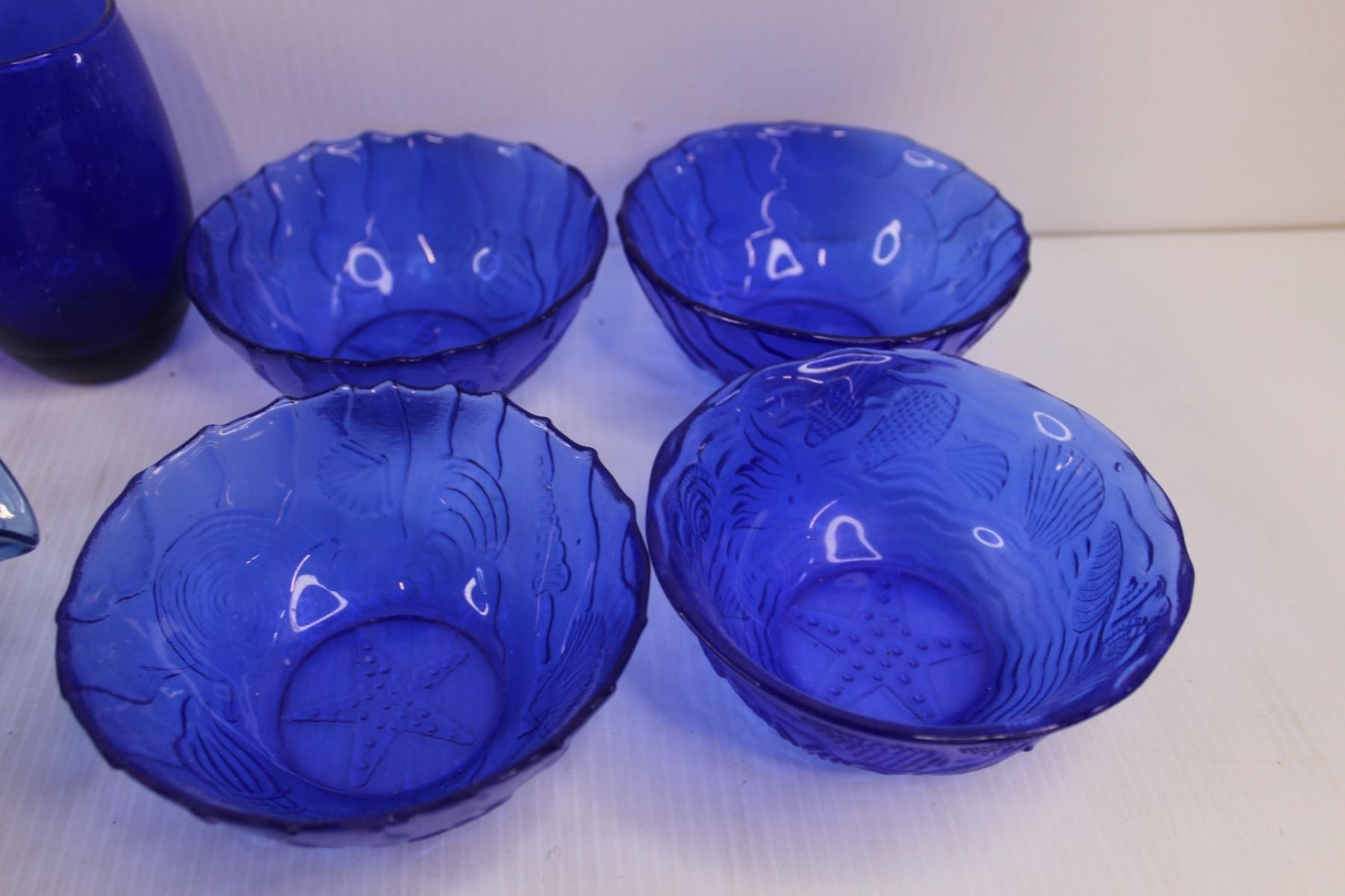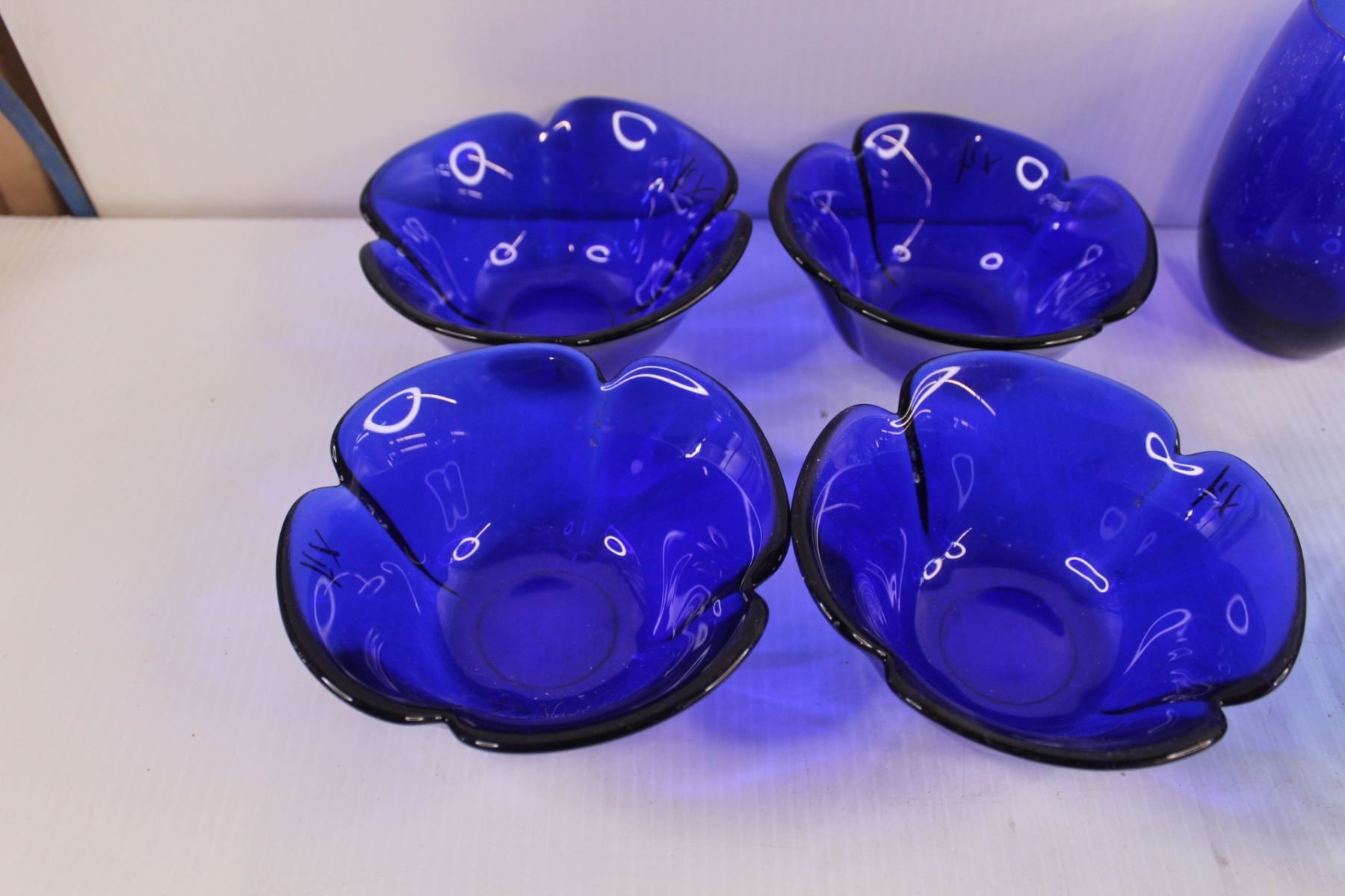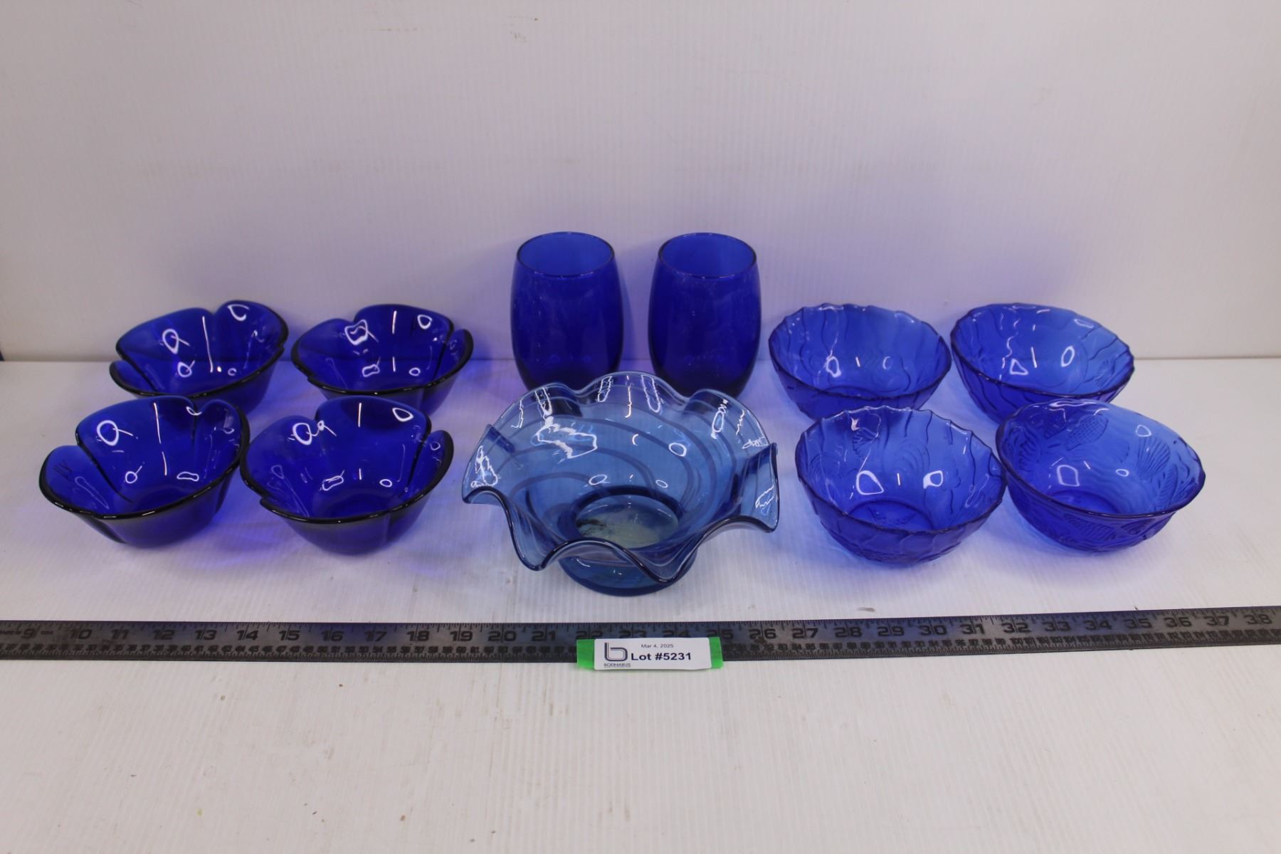 Assorted Sets of Cobalt Blue Glass Serving Dishes & Vase