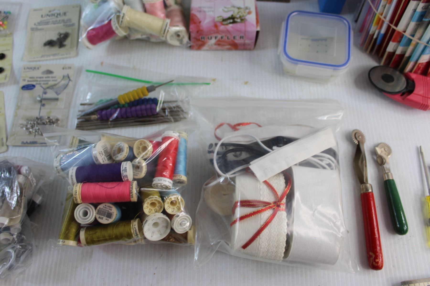 Assorted Sewing Supplies - Threads, Buttons, Fabric Cutters and Misc.