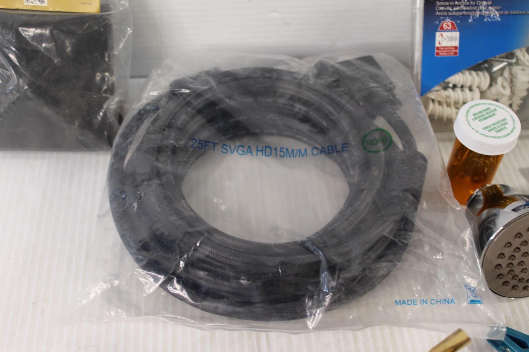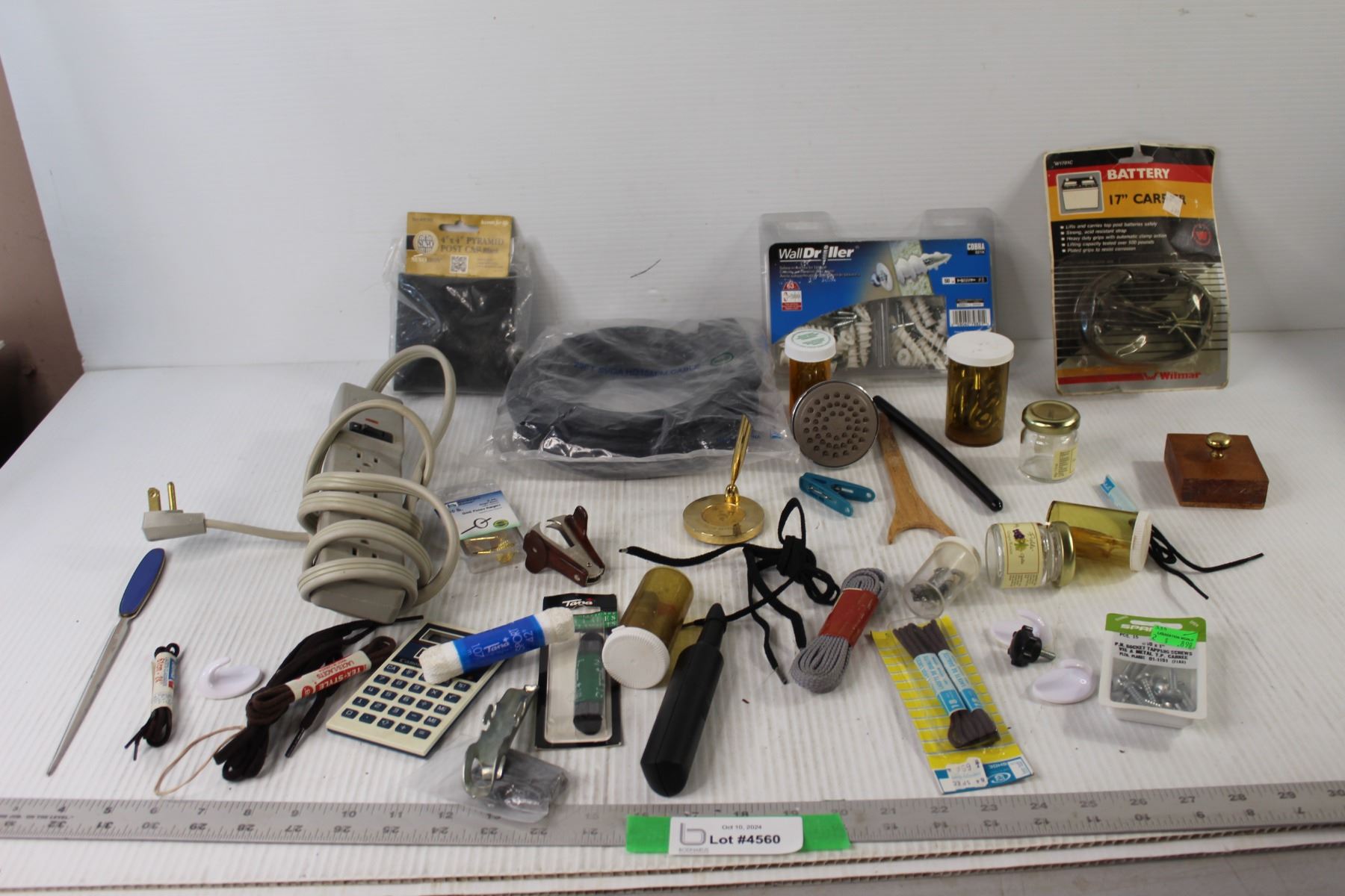 Assorted Shoelaces, 17" Battery Carrier, Calculator, Noma Extension Block, 25' SVGA HD 15mm Cable, Assorted Hardware