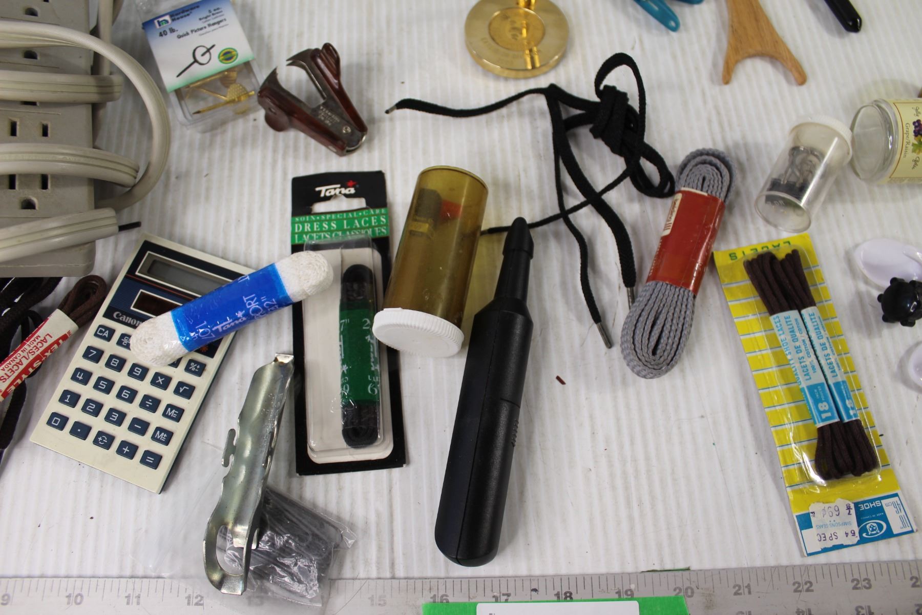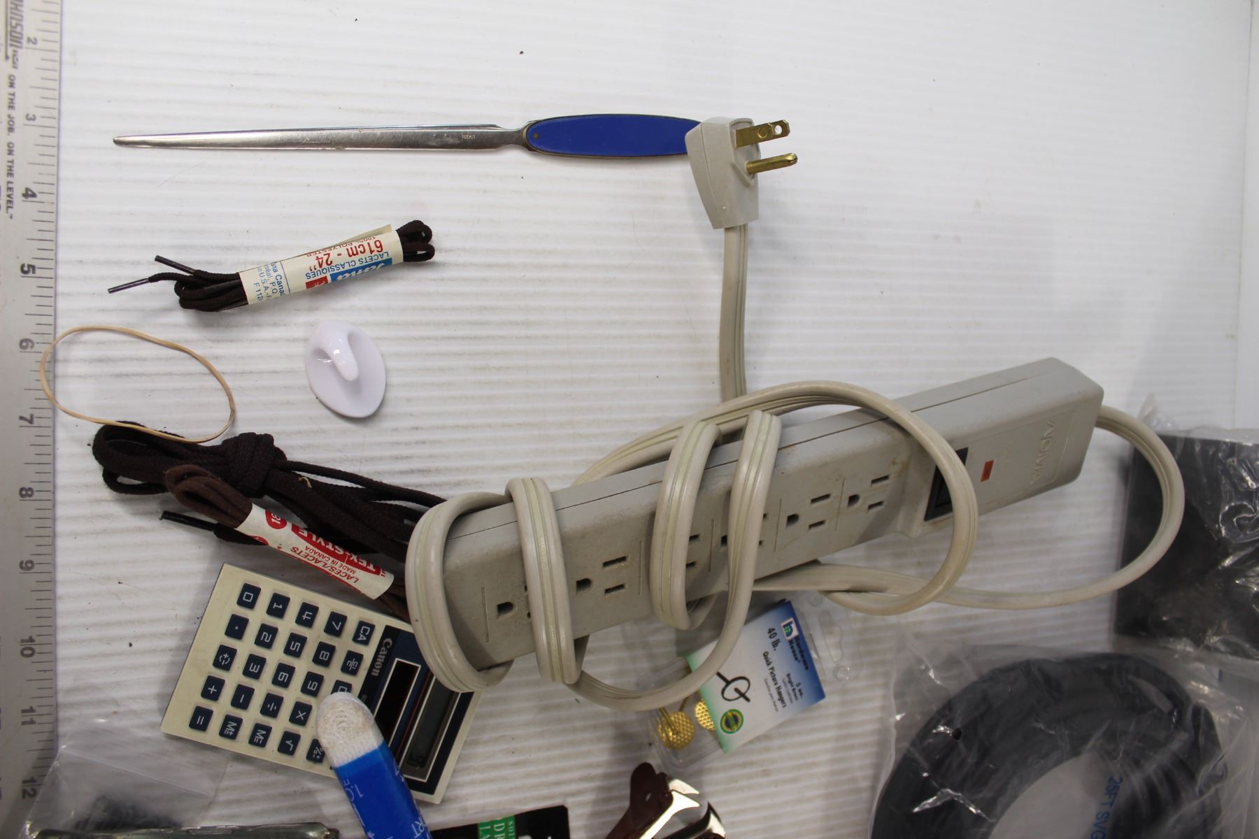 Assorted Shoelaces, 17" Battery Carrier, Calculator, Noma Extension Block, 25' SVGA HD 15mm Cable, A