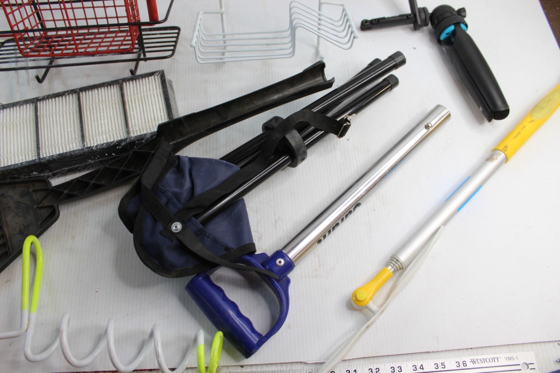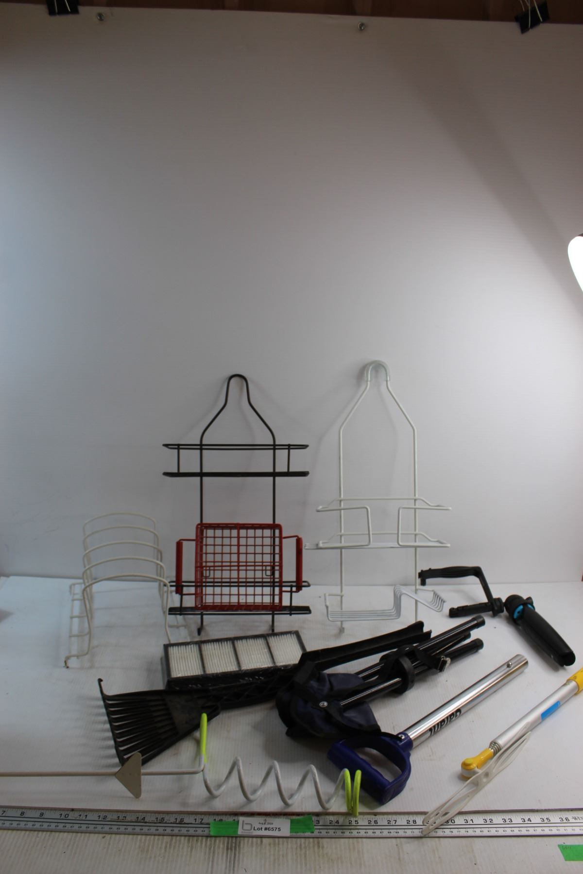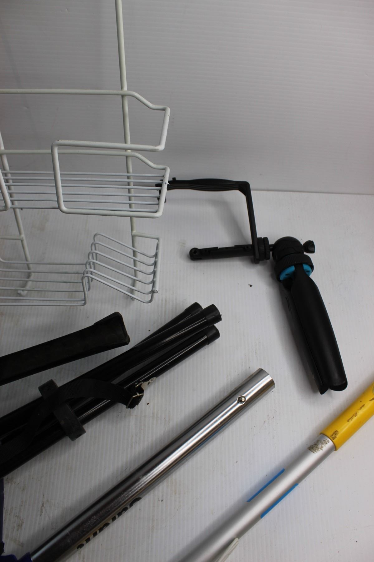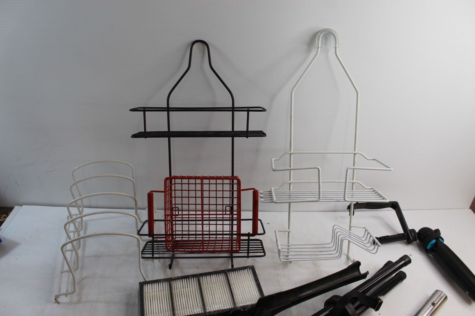 Assorted Shower Racks, Folding Bench, Camera Stabilizer and Assorted Items
