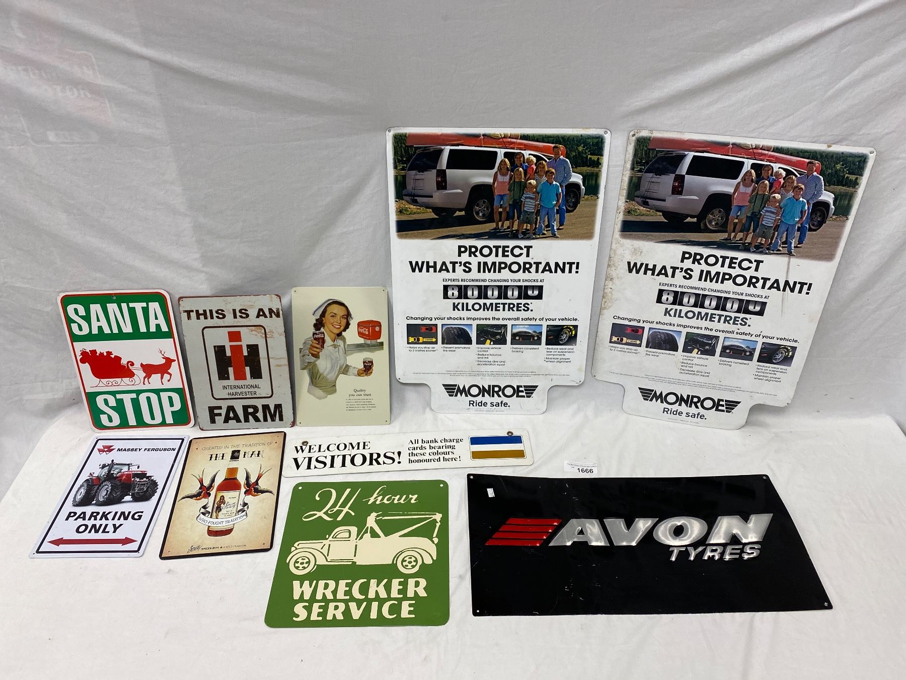Assorted Signs, Welcome Visitors, Sailor Jerry, International Harvester, Etc..