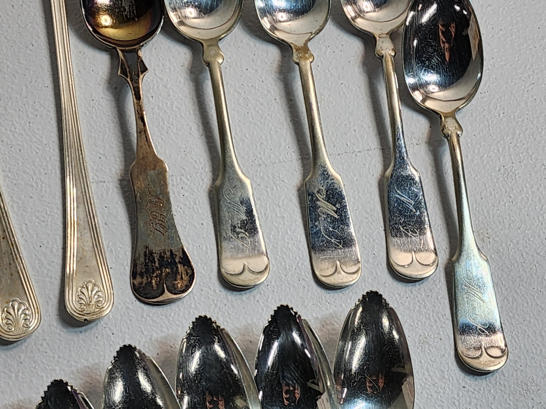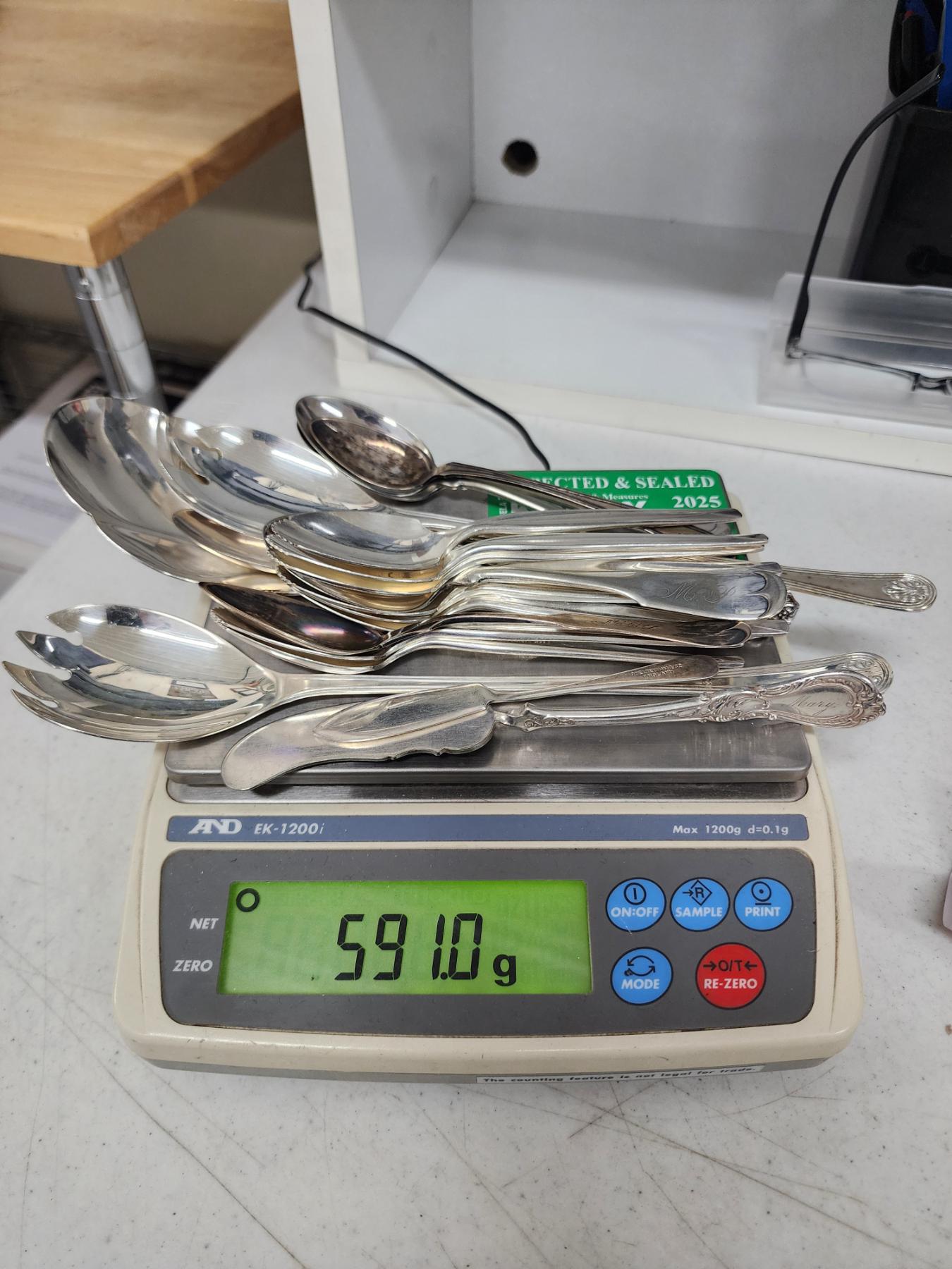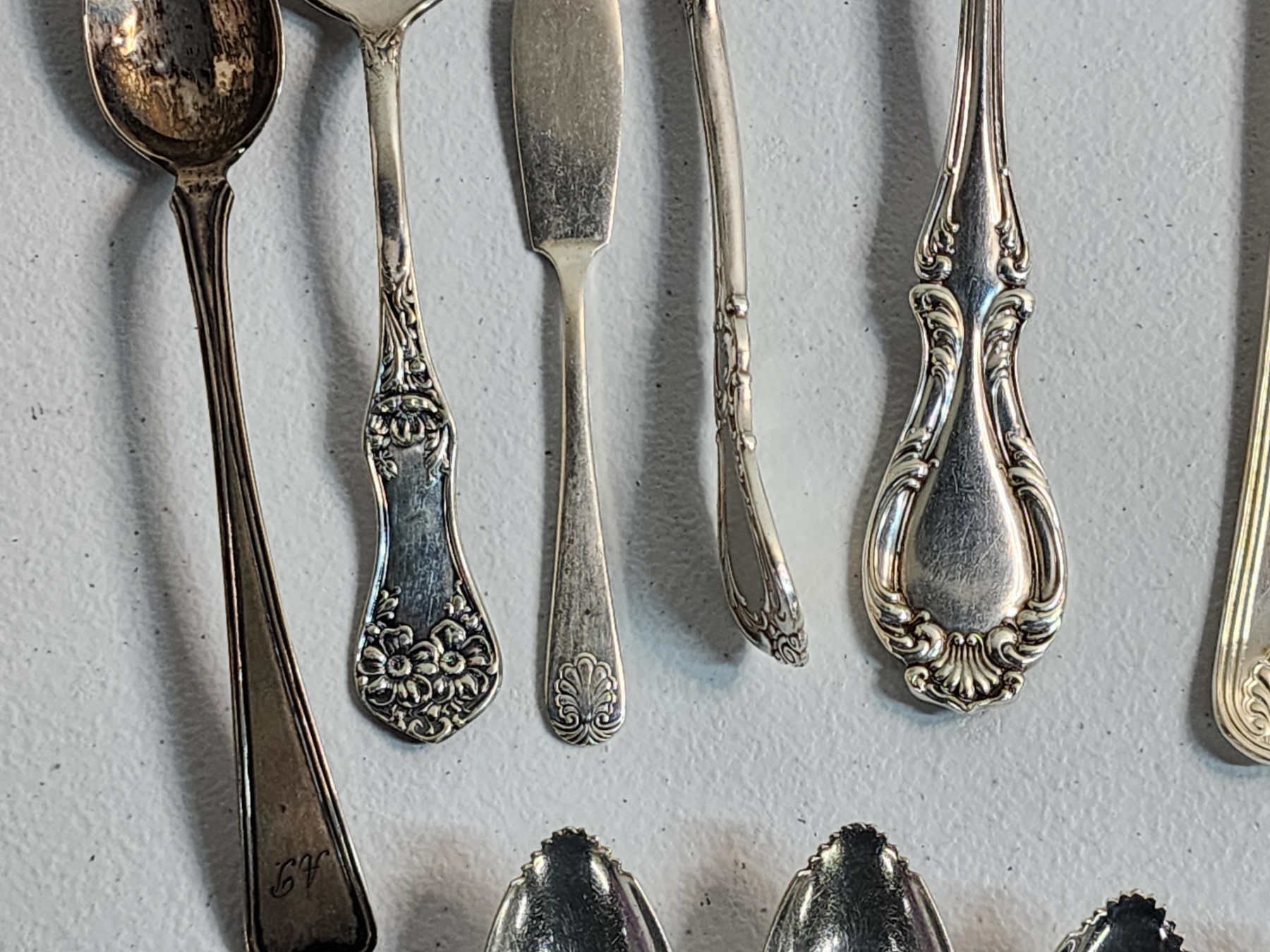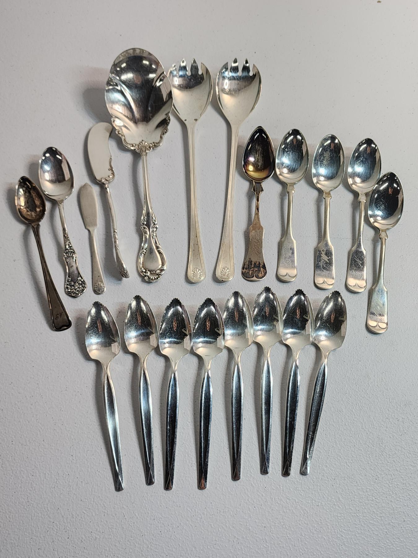 Assorted Silver Plate Flatware: Serving Utensils, Spoons, Butter Knives Total Weight: 591.0g