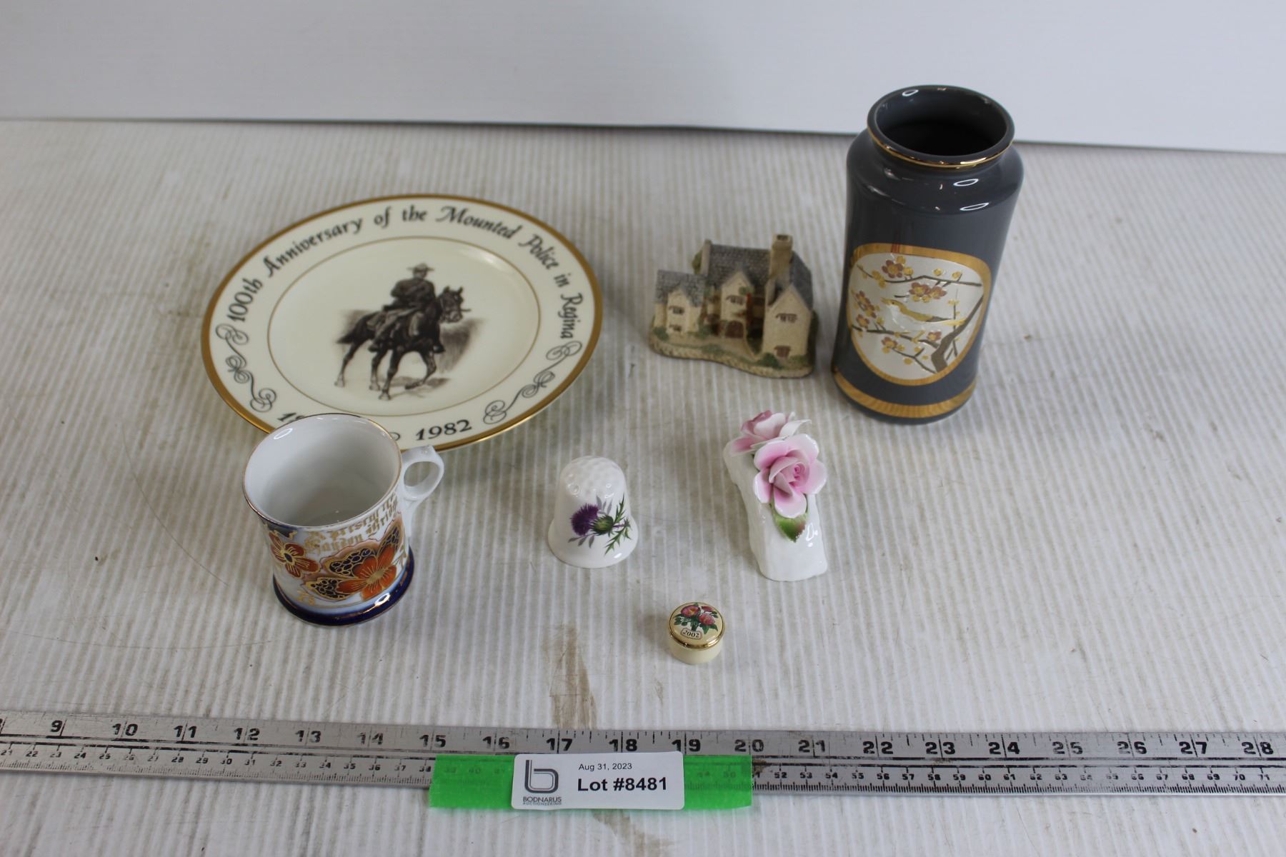 Assorted Small Decorations - Plate, Thimble, Mug, Misc.
