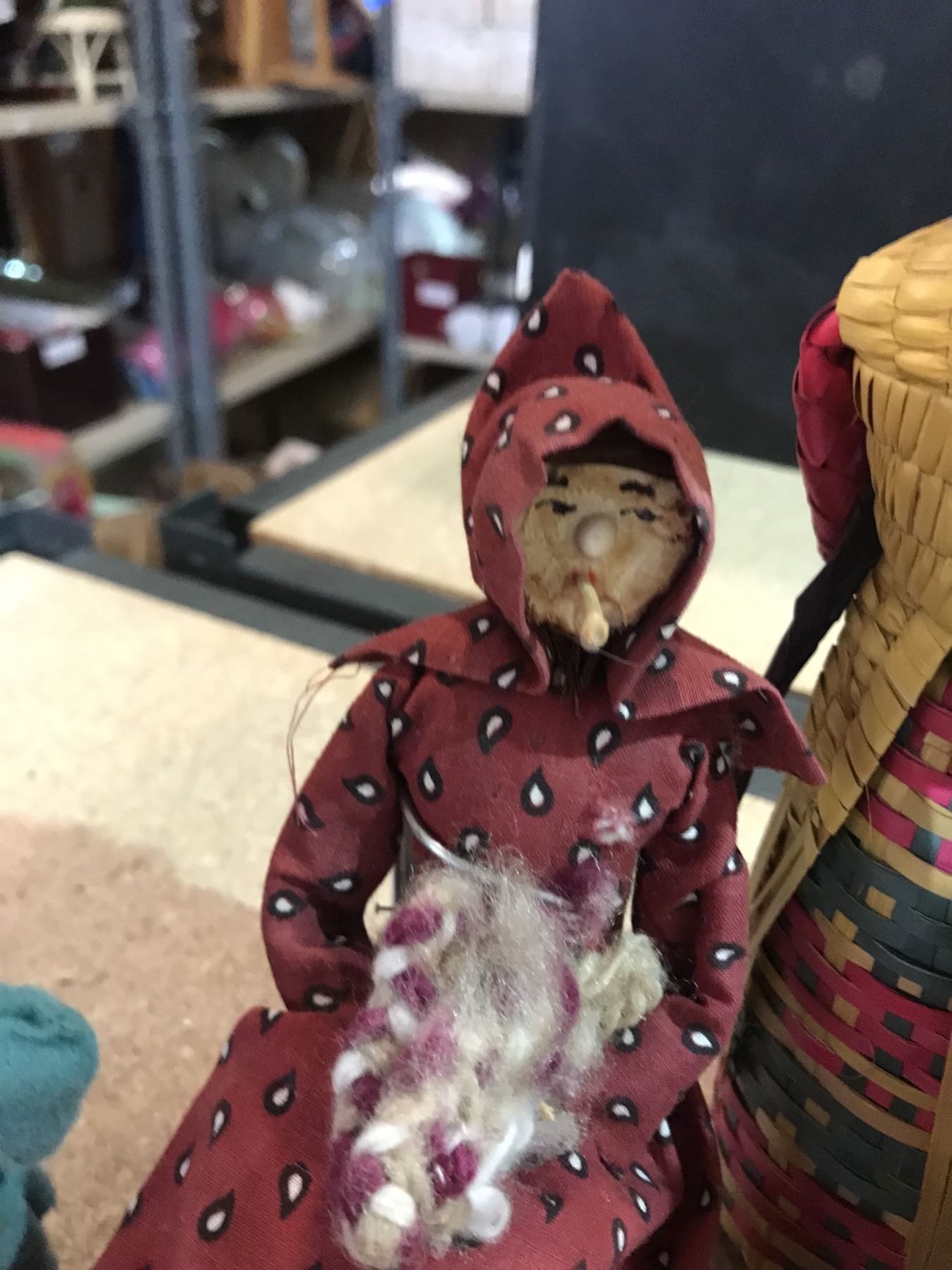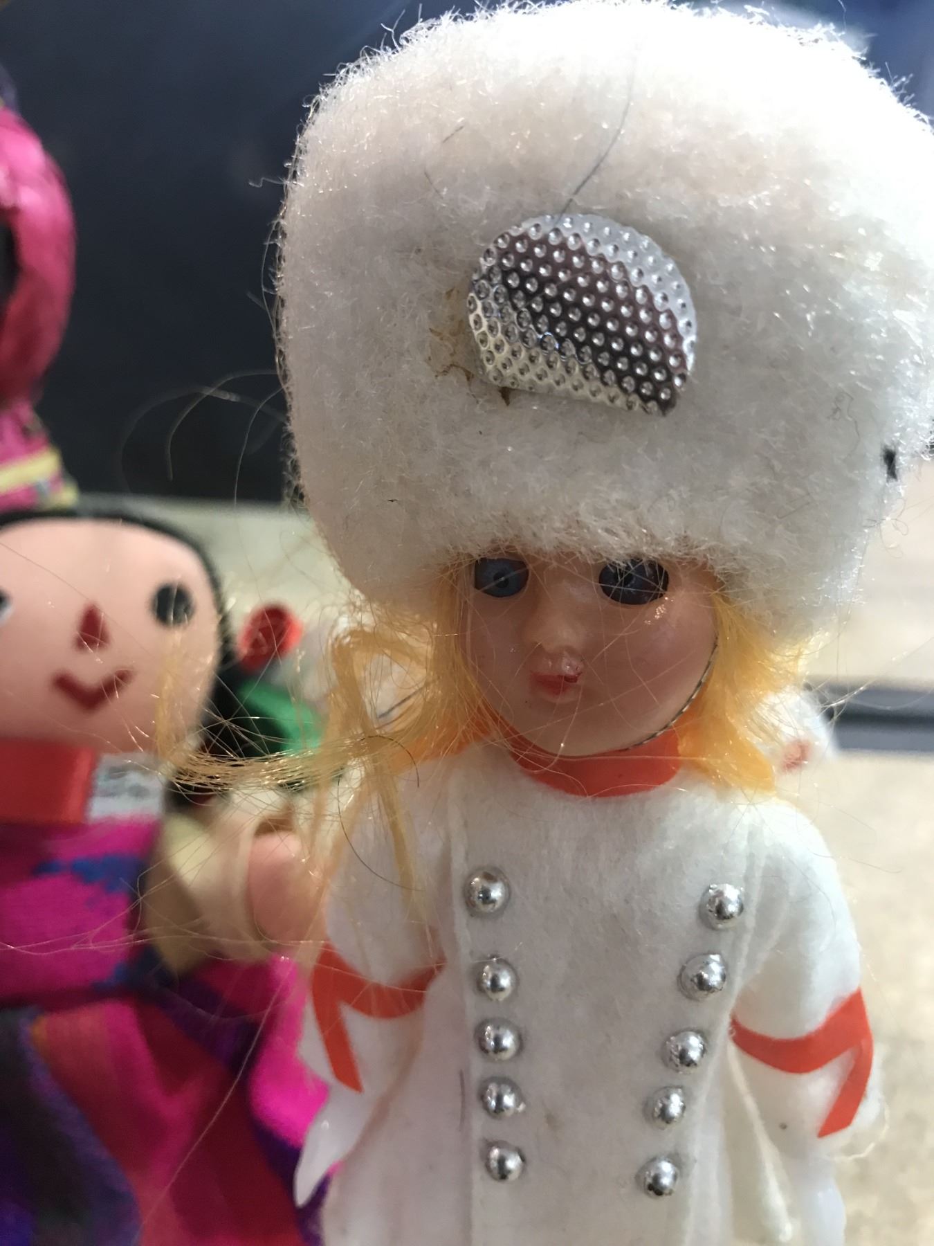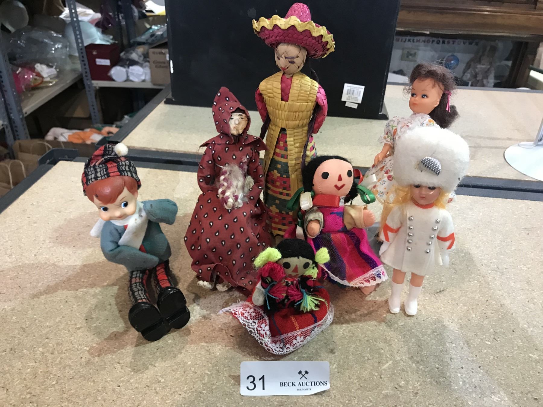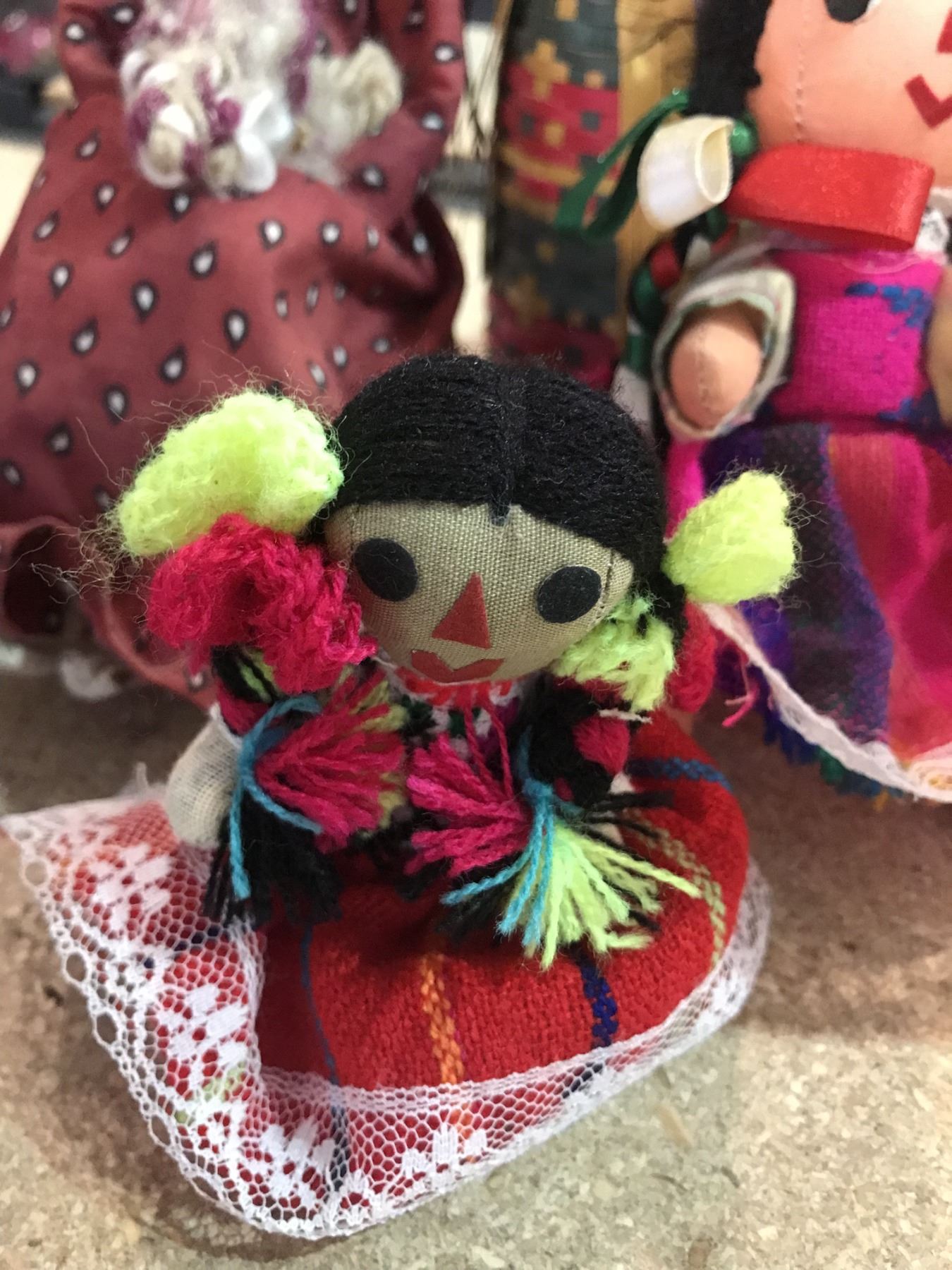 Assorted small dolls made of various materials.