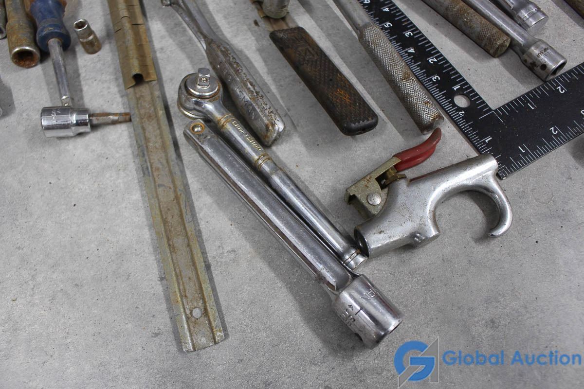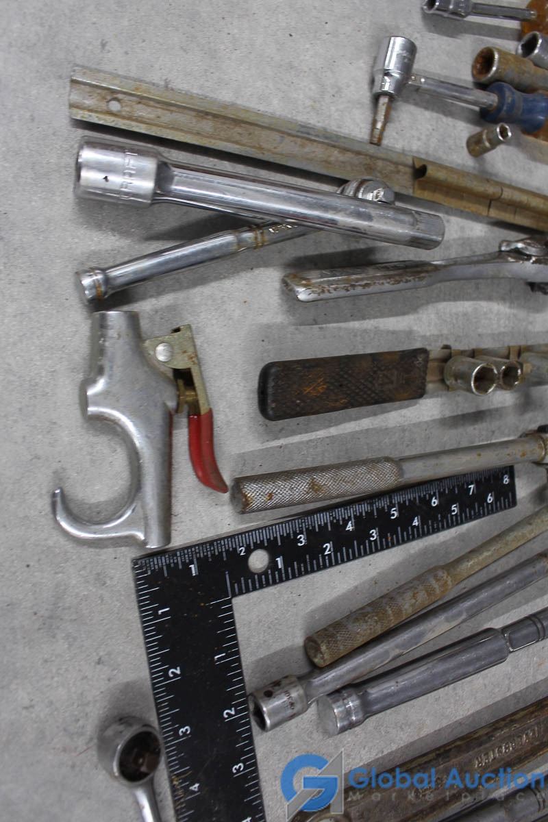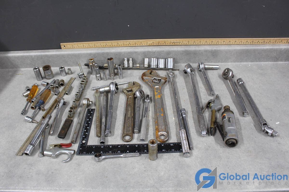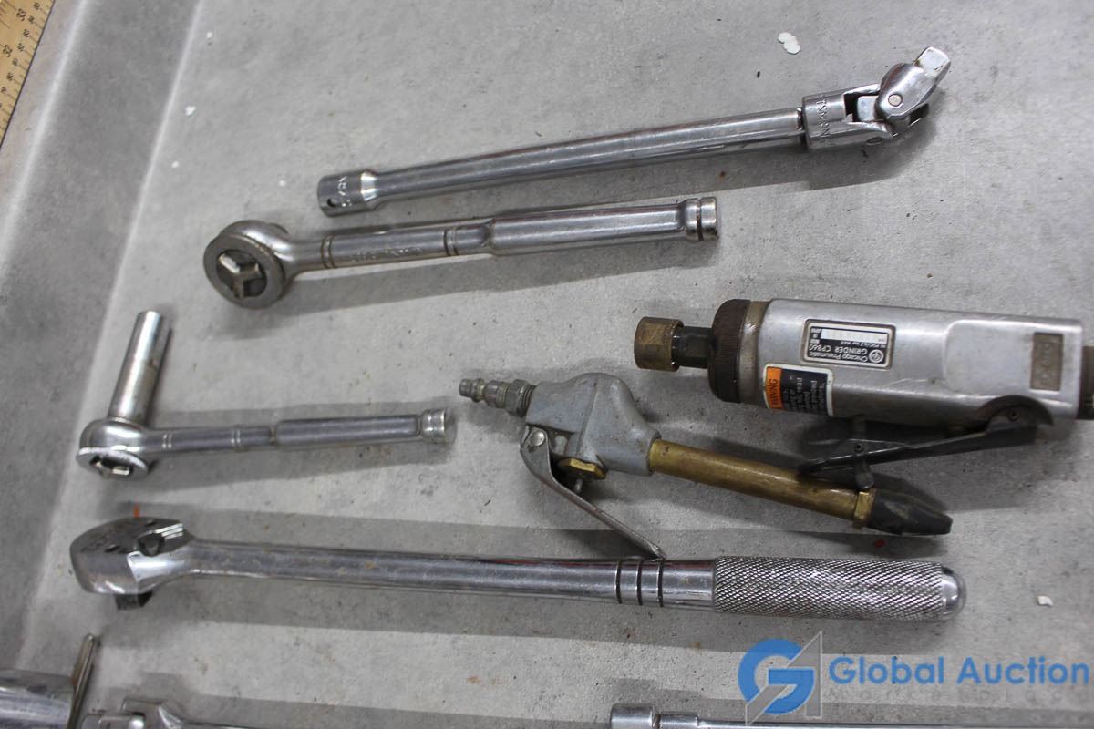 Assorted Sockets, Air Ratchet, Wrenches and Other Tools