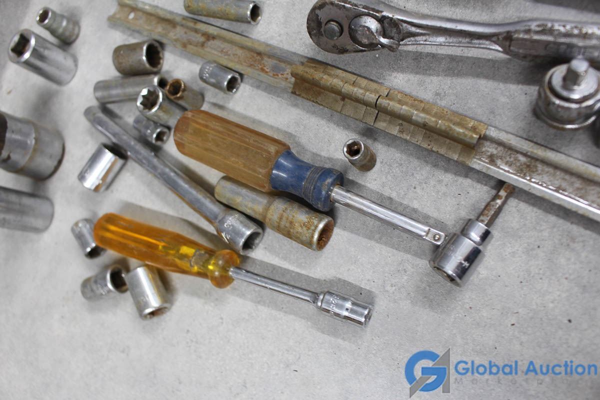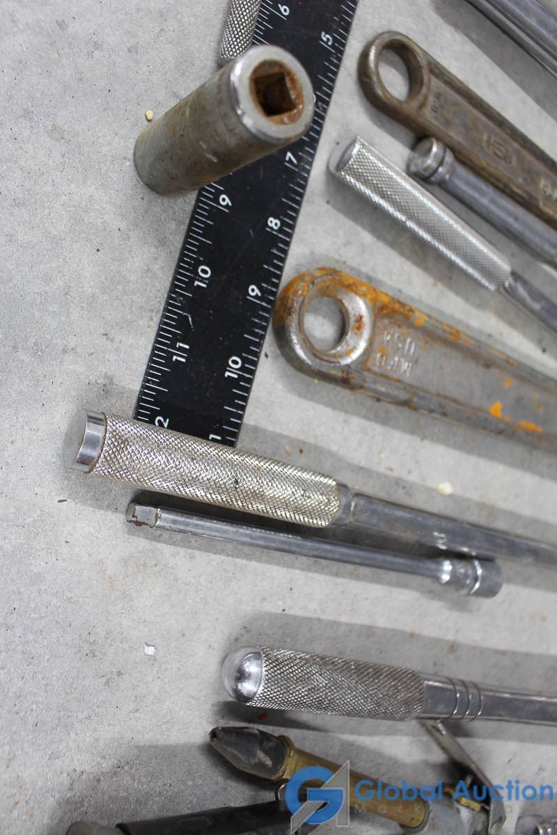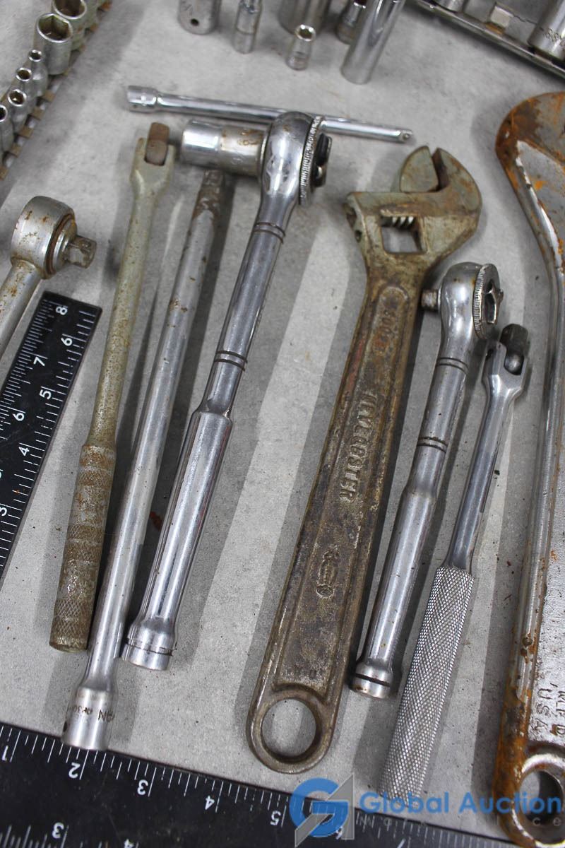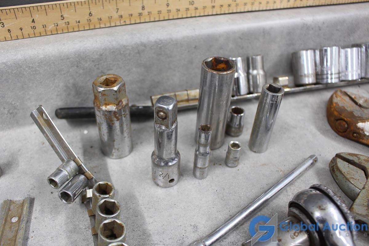 Assorted Sockets, Air Ratchet, Wrenches and Other Tools