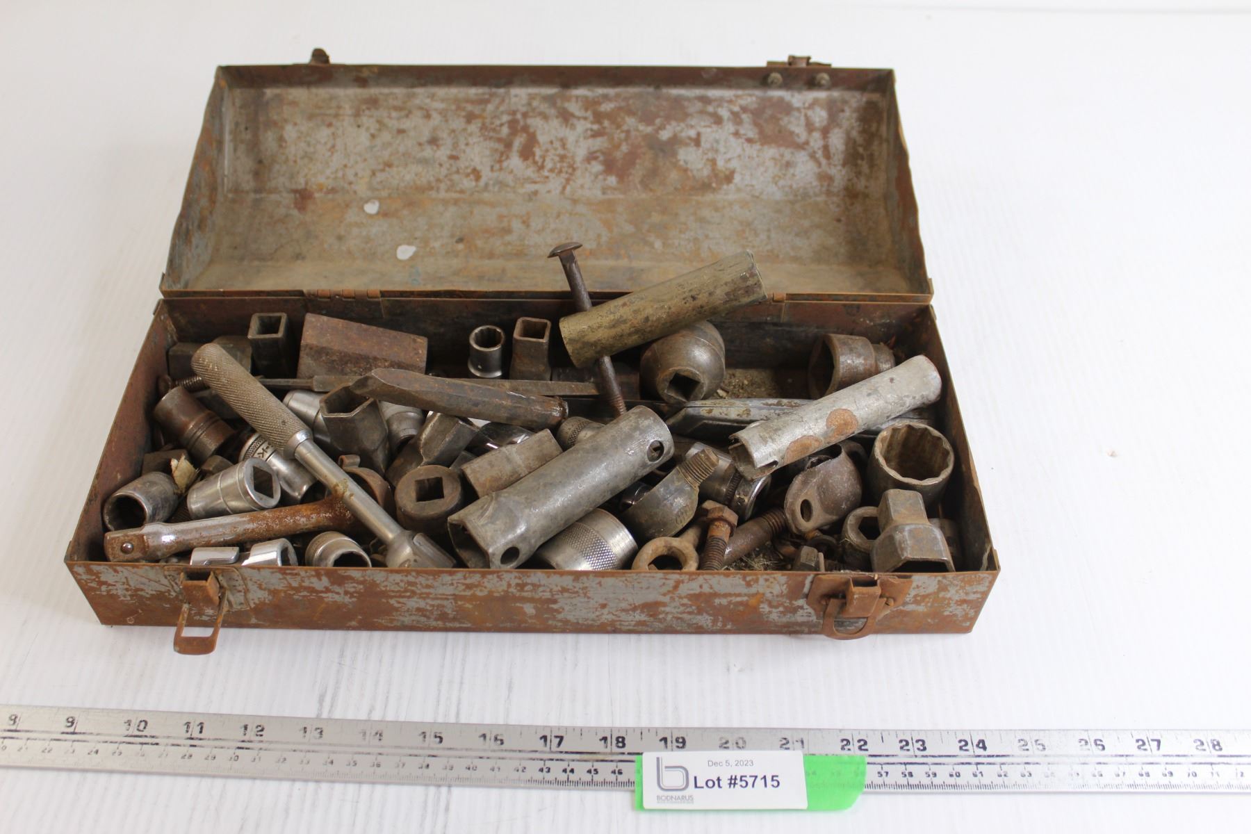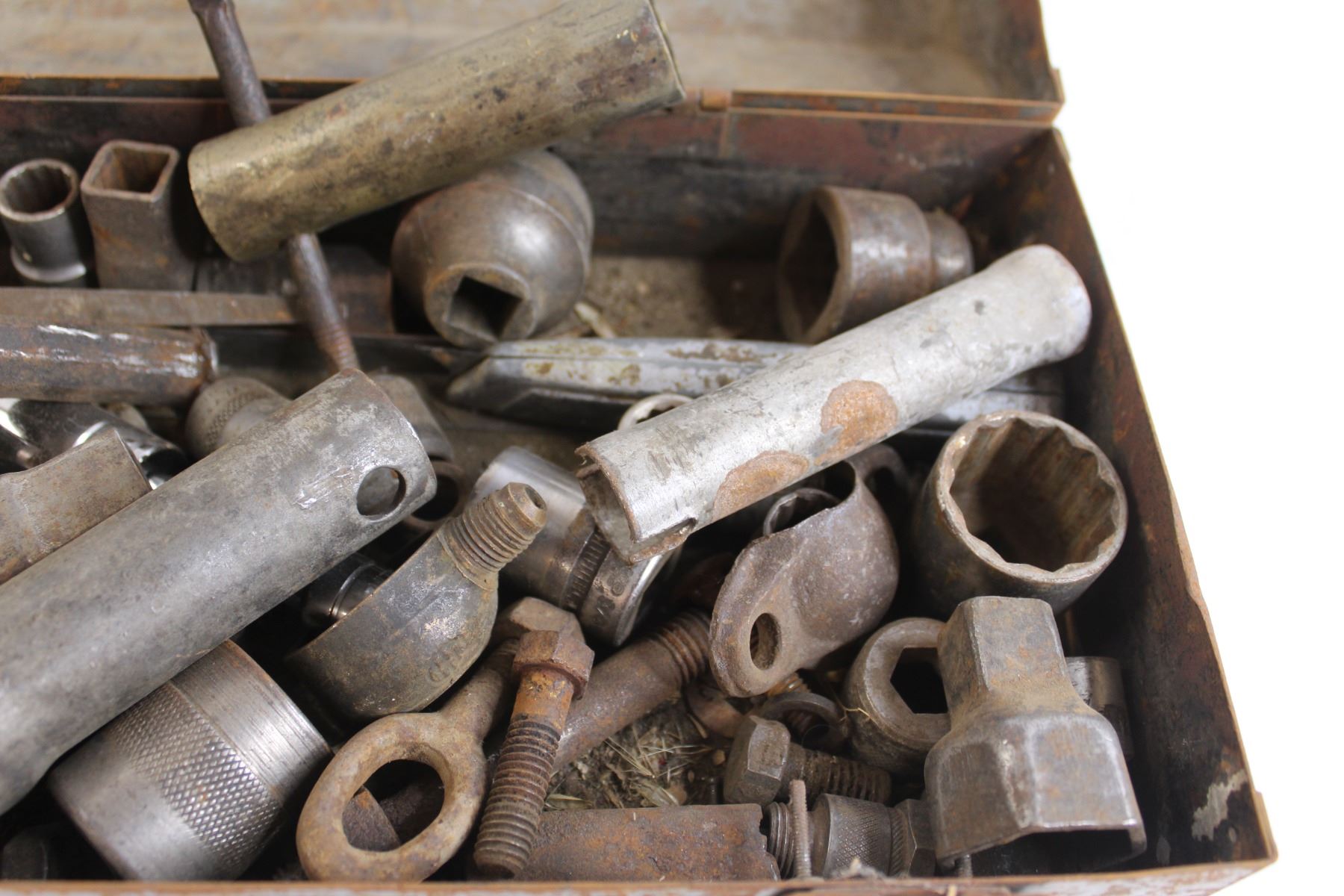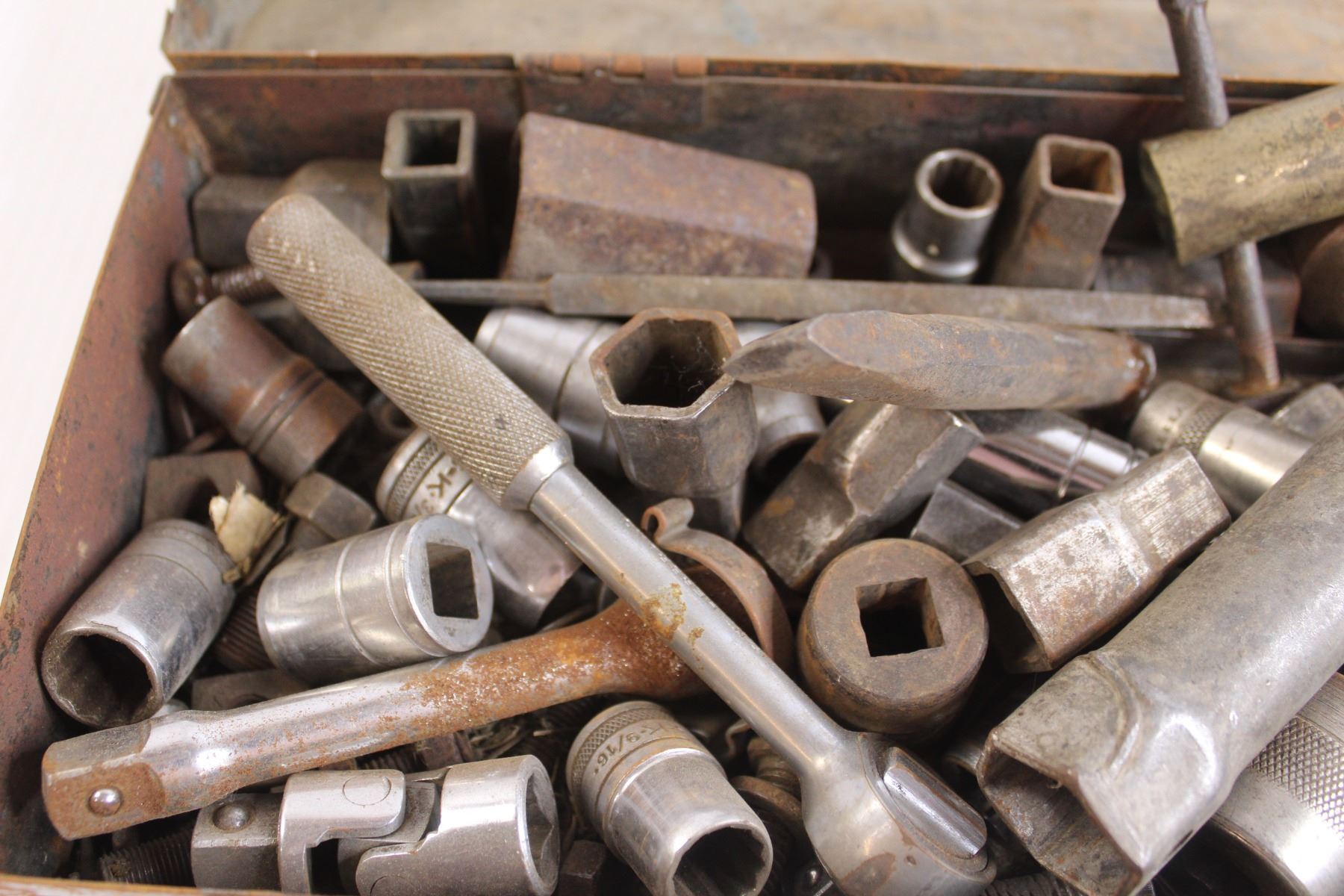 Assorted Sockets, Nails, Files, and Screws in Toolbox