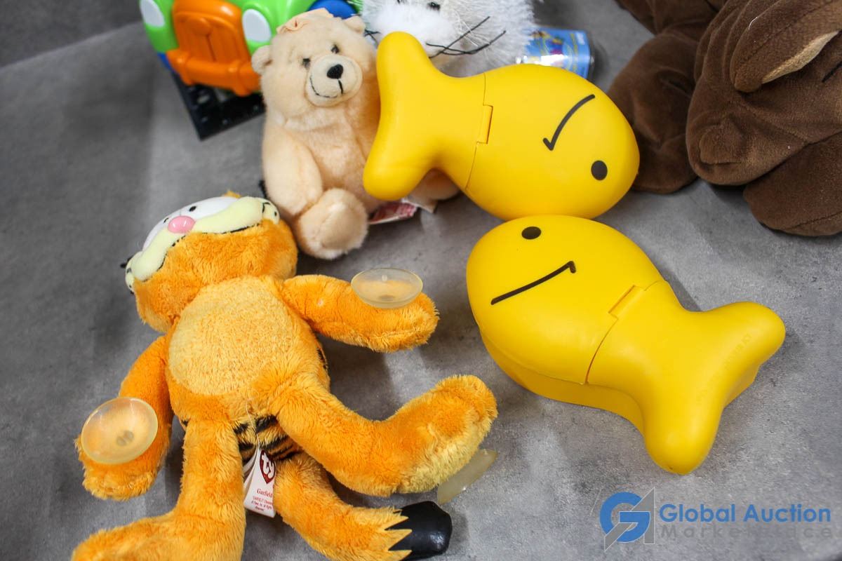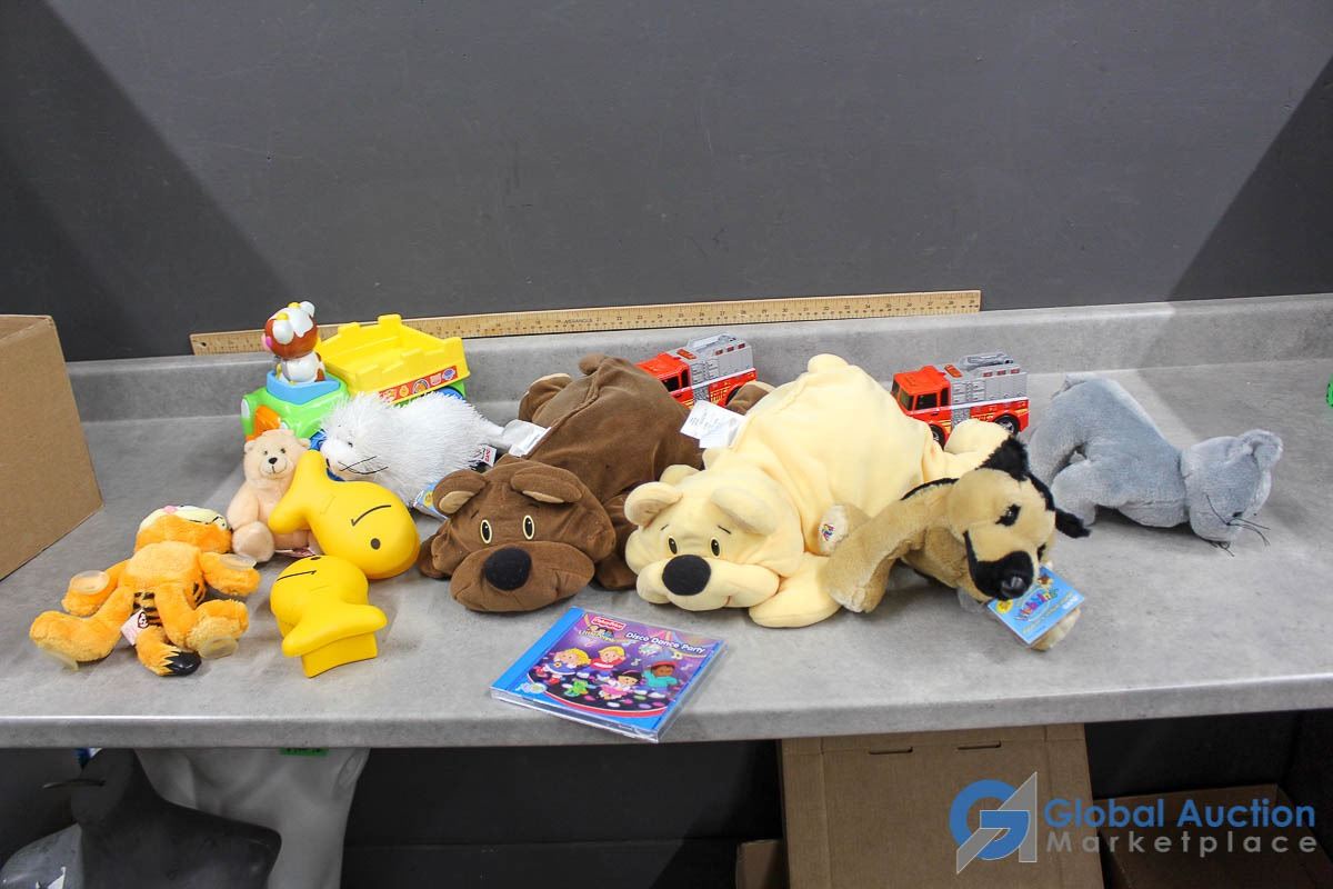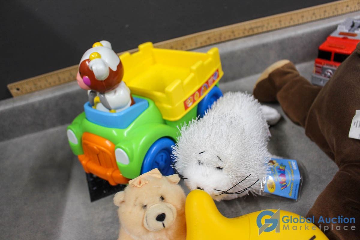 Assorted Soft Toys, Fire Trucks & Goldfish Cracker To Go Containers