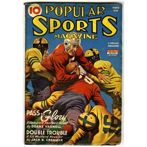 <B>Assorted Sports Pulps Group (Various Publishers, 1940-44) Condition: Average GD/VG.</B></I> This full short box includes December 1942 and July 1944 issues of <B>Sports Novels</B></I>; May 1942 <B>Sports Action</B></I>; May 1940 (GD, back cover gone), and Summer (Uncle Sam cover), Fall, and Winter 1944 <B>Thrilling Sports</B></I>; May 1943 <B>12 Sports Aces</B></I>; March, Summer, Fall, and Winter 1943, and Spring, Summer, and Winter 1944 <B>All Sports</B></I>; August 1942 <B>Ace Sports</B></I>; Winter 1943 and Spring 1944 <B>Popular Sports</B></I>; Spring 1944 <B>Exciting Sports</B></I>; Summer 1943 and Summer 1944 <B>Baseball Stories</B></I>; May 1940, January 1941, and September 1942 <B>Sport Story</B></I>; April 1943 <B>Complete Sports</B></I>; January and Fall 1943 <B>Sports Winners</B></I>; Summer 1943 and Winter 1945 <B>Exciting Sports</B></I>; Winter 1943 <B>Exciting Football</B></I>; and the October and December 1942, February, June, and October 1943, and February, April, June (2 copies) 1944 <B>Dime Sports</B></I>. Approximate Bookery's Guide to Pulps value for group = $175.<BR><BR><b>Shipping:</b> Comics Box - Full, Short (<a target="_blank" href="http://www.heritageauctions.com/common/shipping.php">view shipping information</a>)