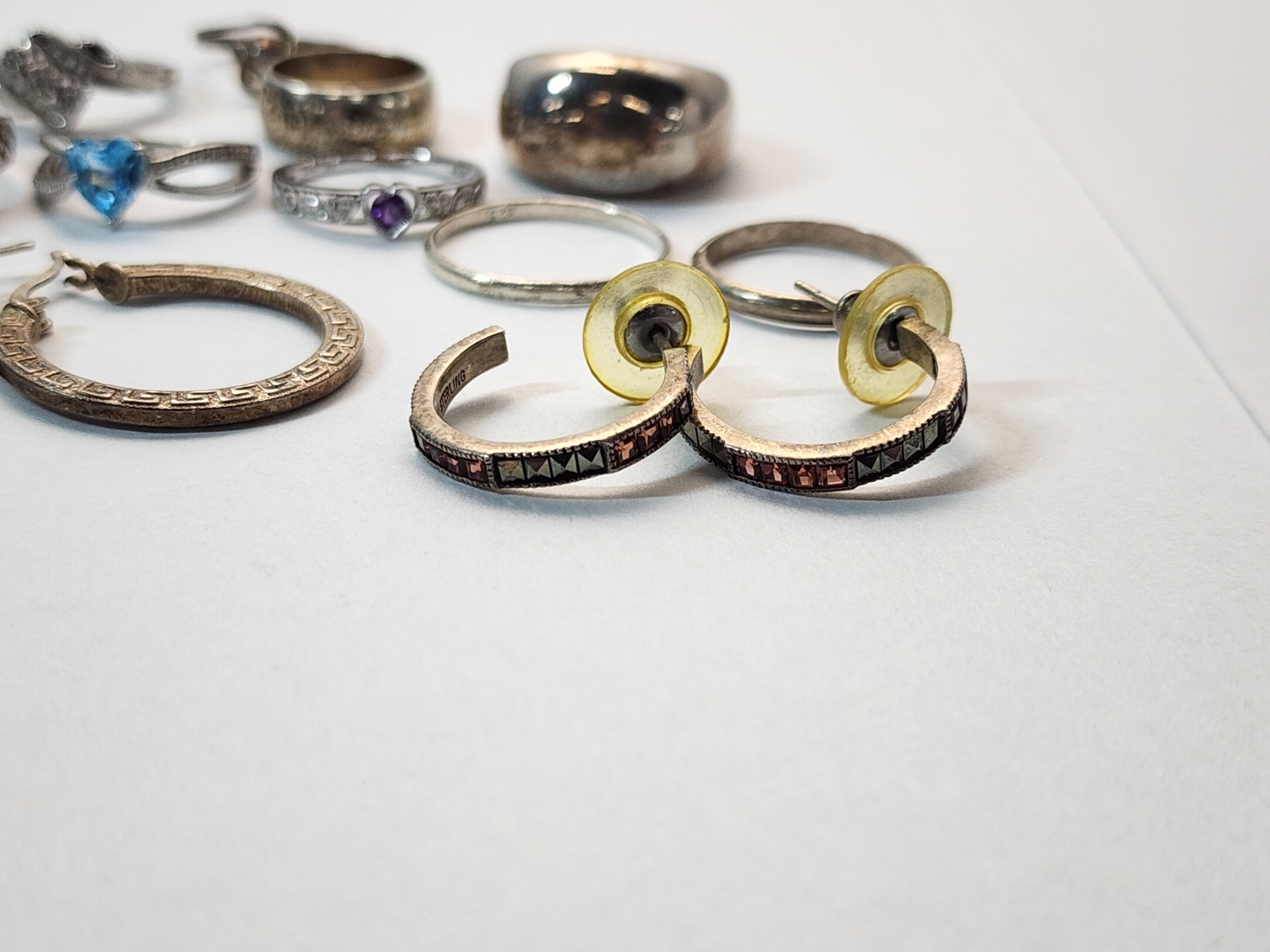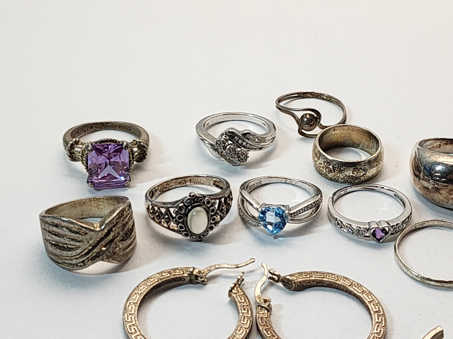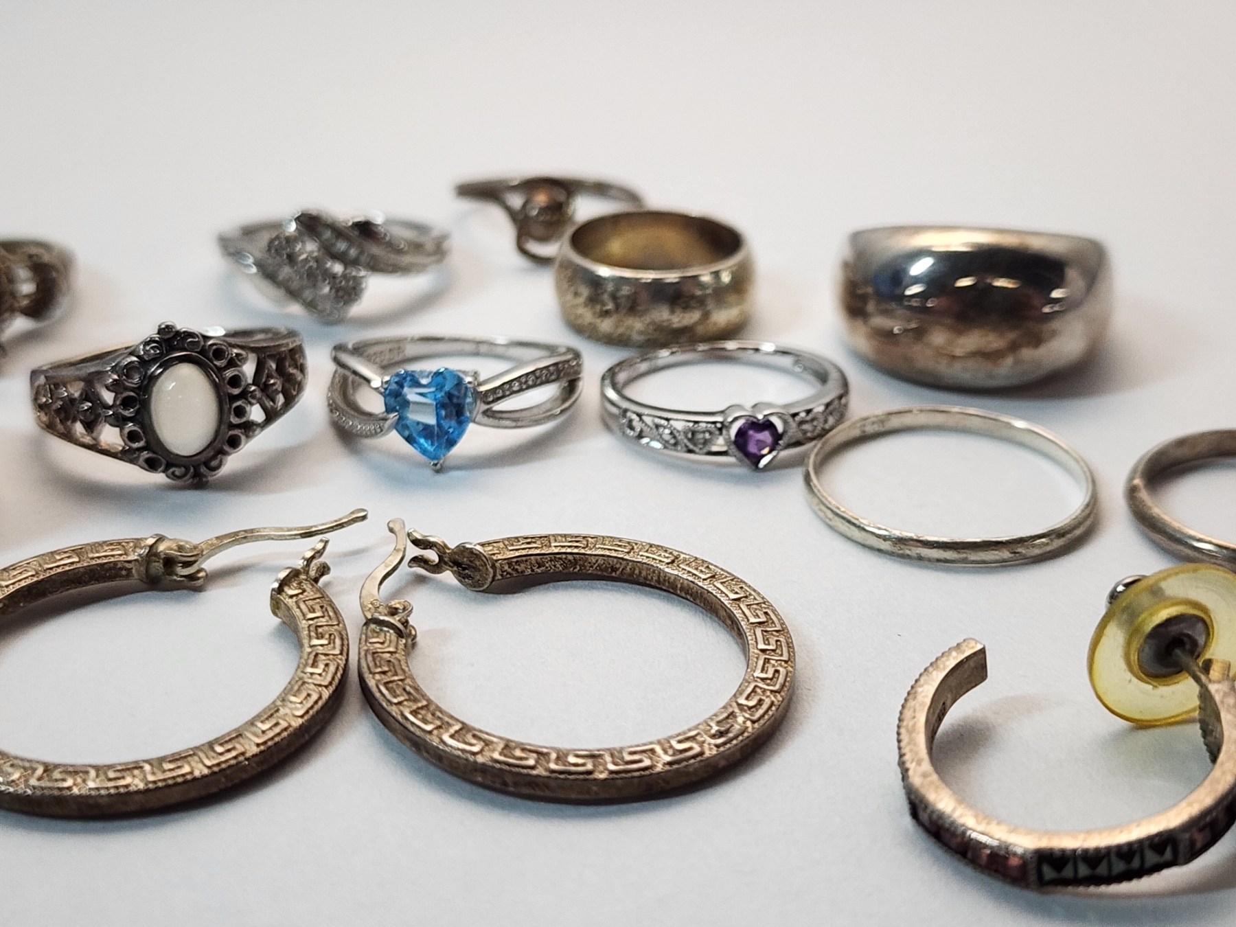 Assorted Sterling Silver Rings and Earrings Total Weight 53.5g Sizes 4-10