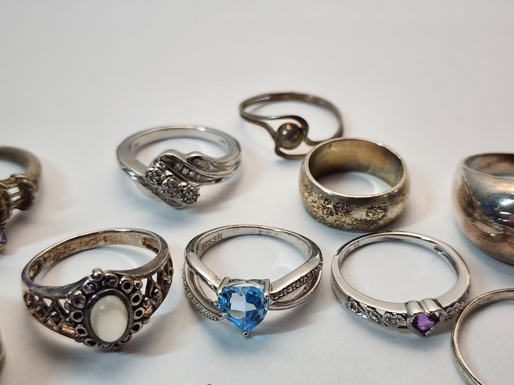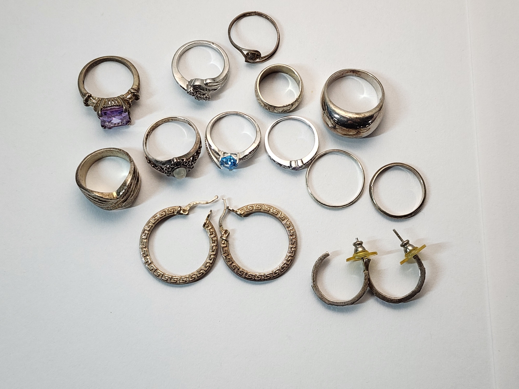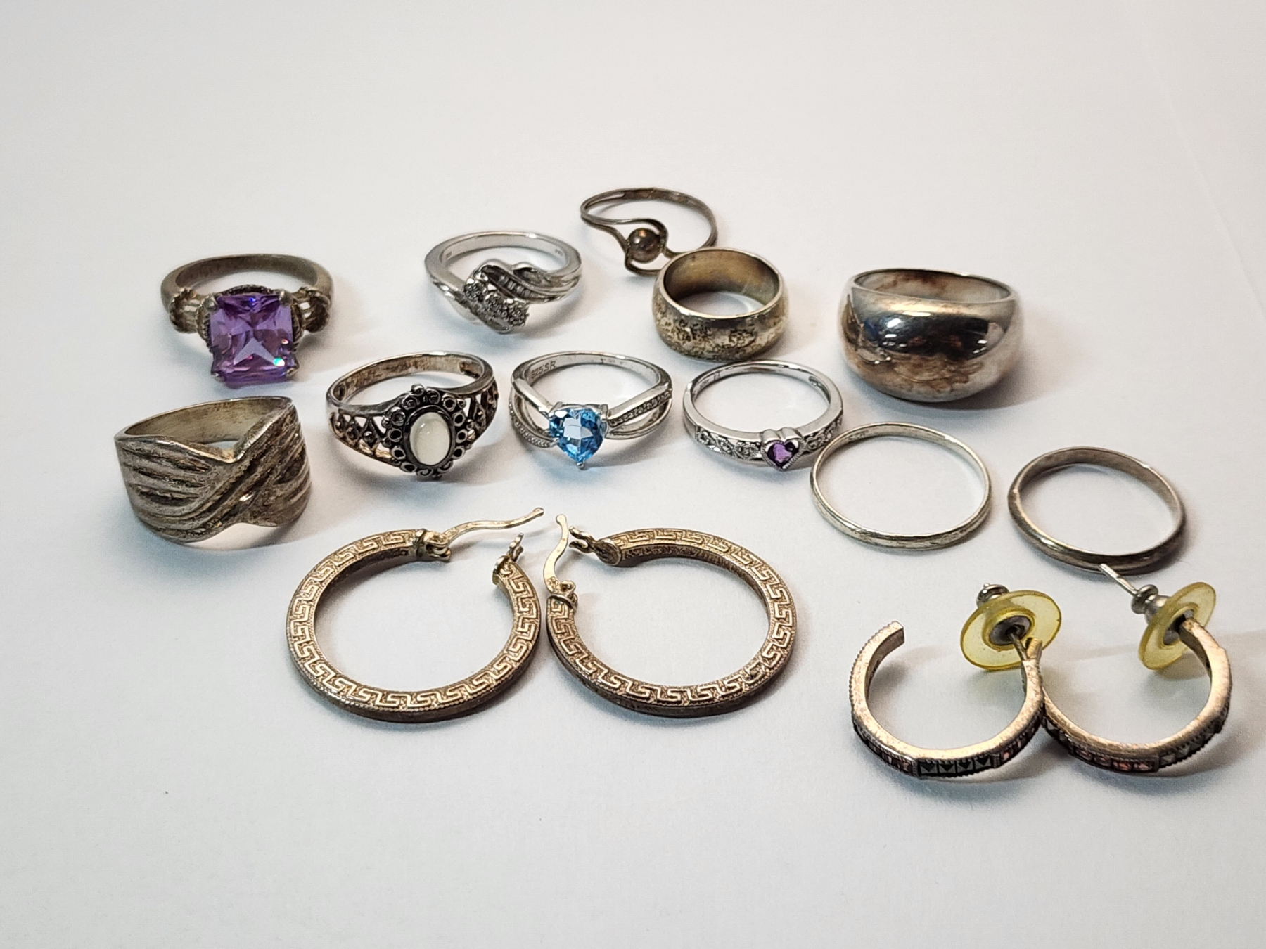 Assorted Sterling Silver Rings and Earrings Total Weight 53.5g Sizes 4-10