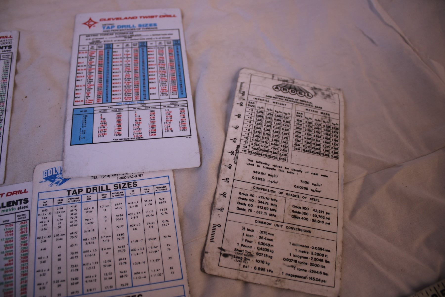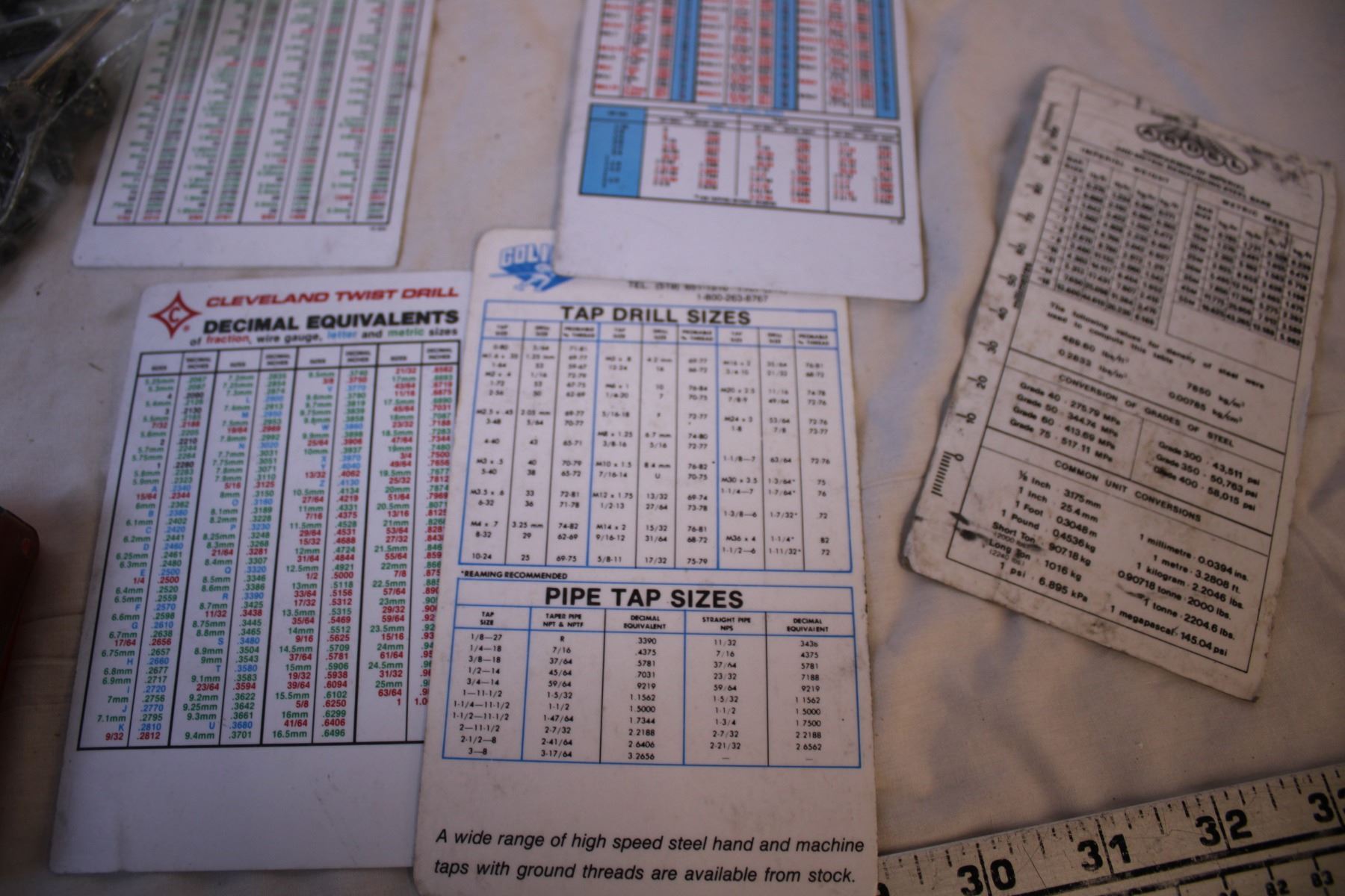 Assorted Tap and Drills + Drill Bit Size Equivalent Sheets