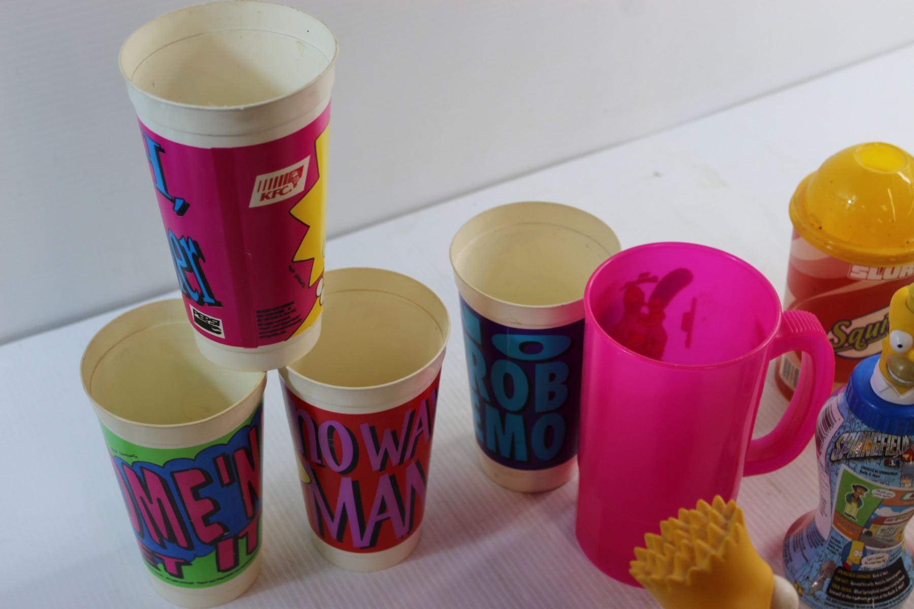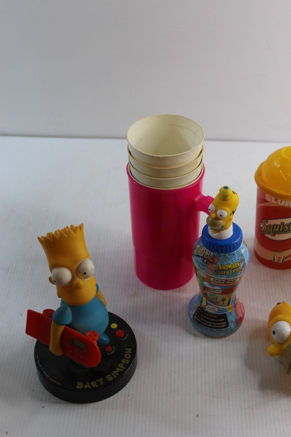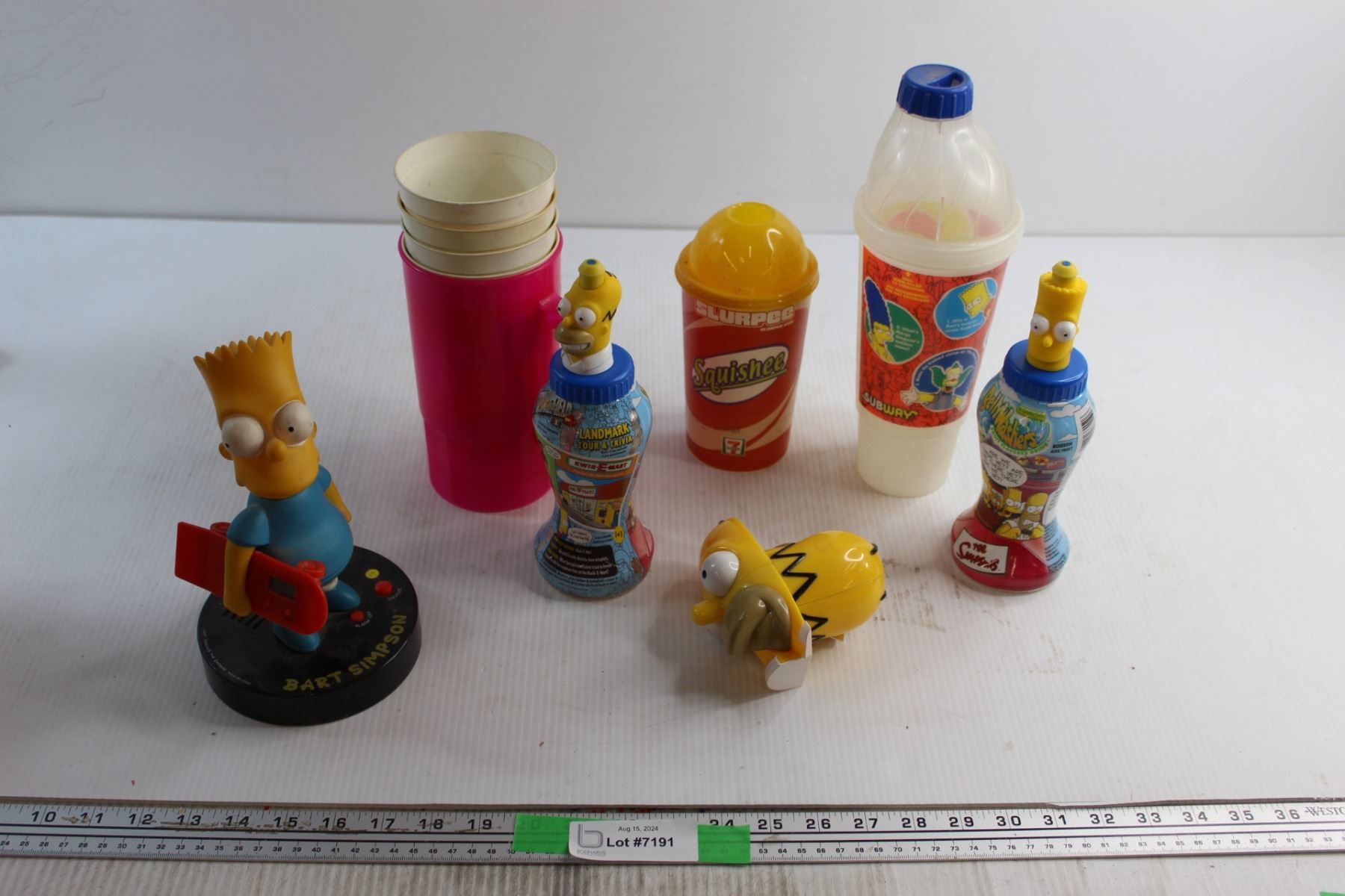 Lots of Assorted The Simpsons Cups, Wesco Bart Clock, Bucket and Homer Rubik's Cube