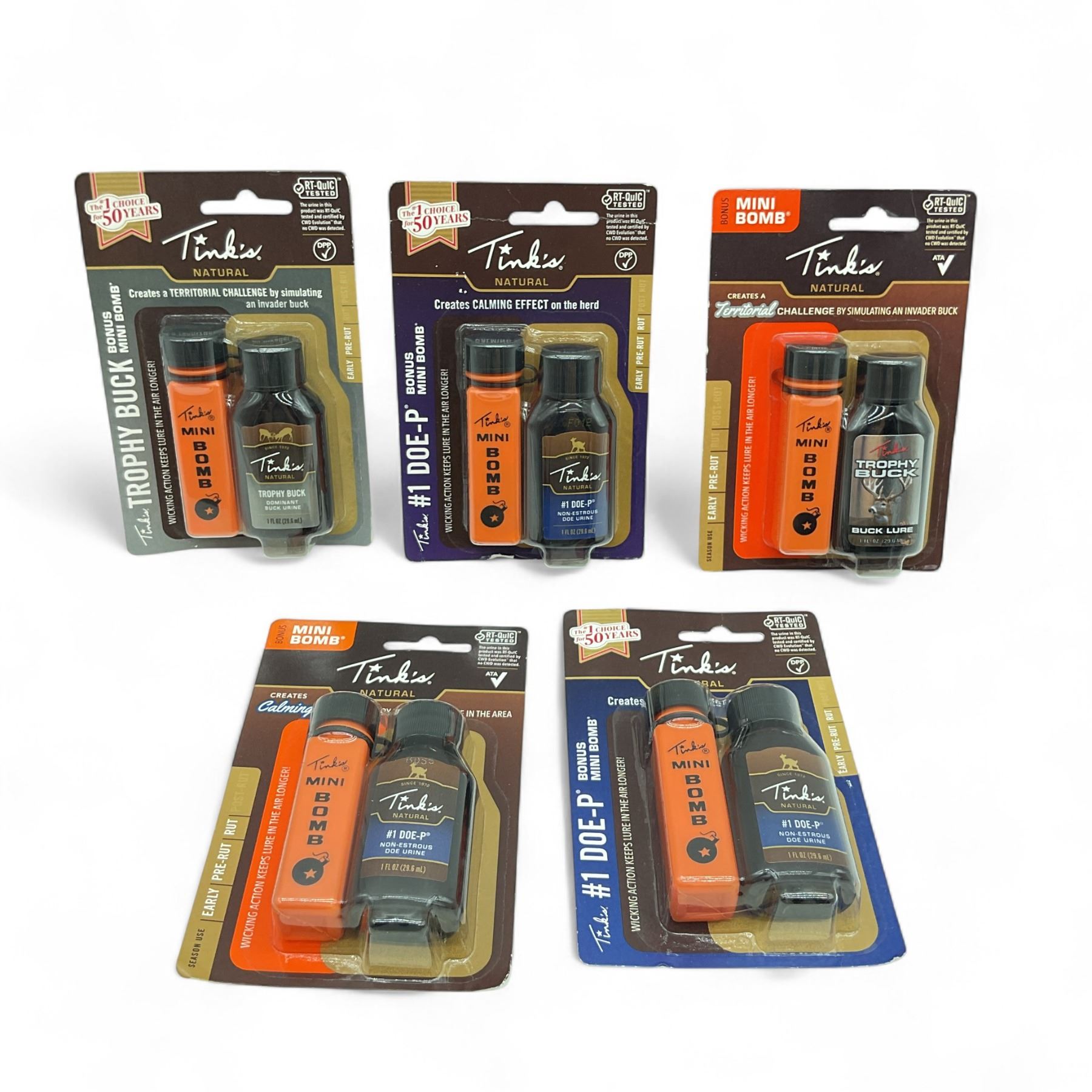 - Tink's Natural #1 Doe-P Non-Estrous Doe Urine, 29.6 ml Bottle with Mini Bomb X 3 Qty, New