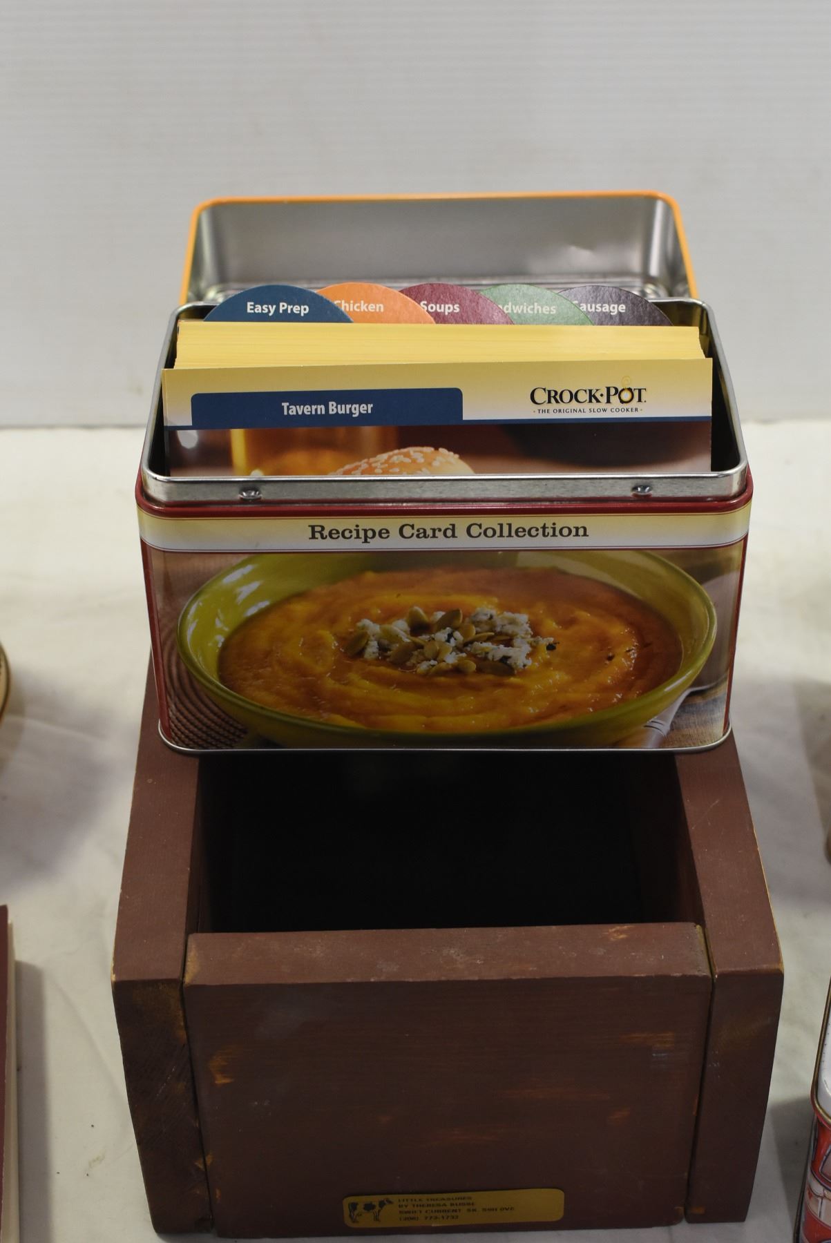 Assorted Tins & Wooden Shelf