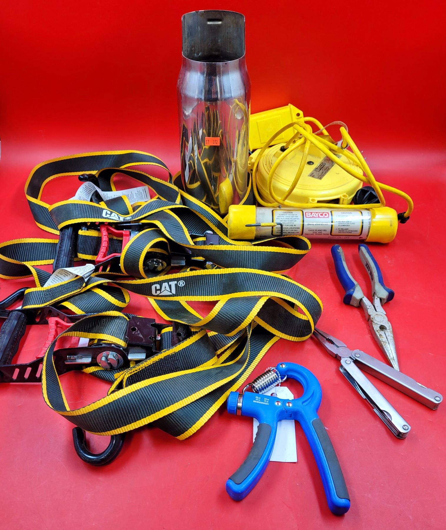 Assorted Tool Lot w/ Multi-Tool, Cat Straps, Retractable Extension Cord, & More