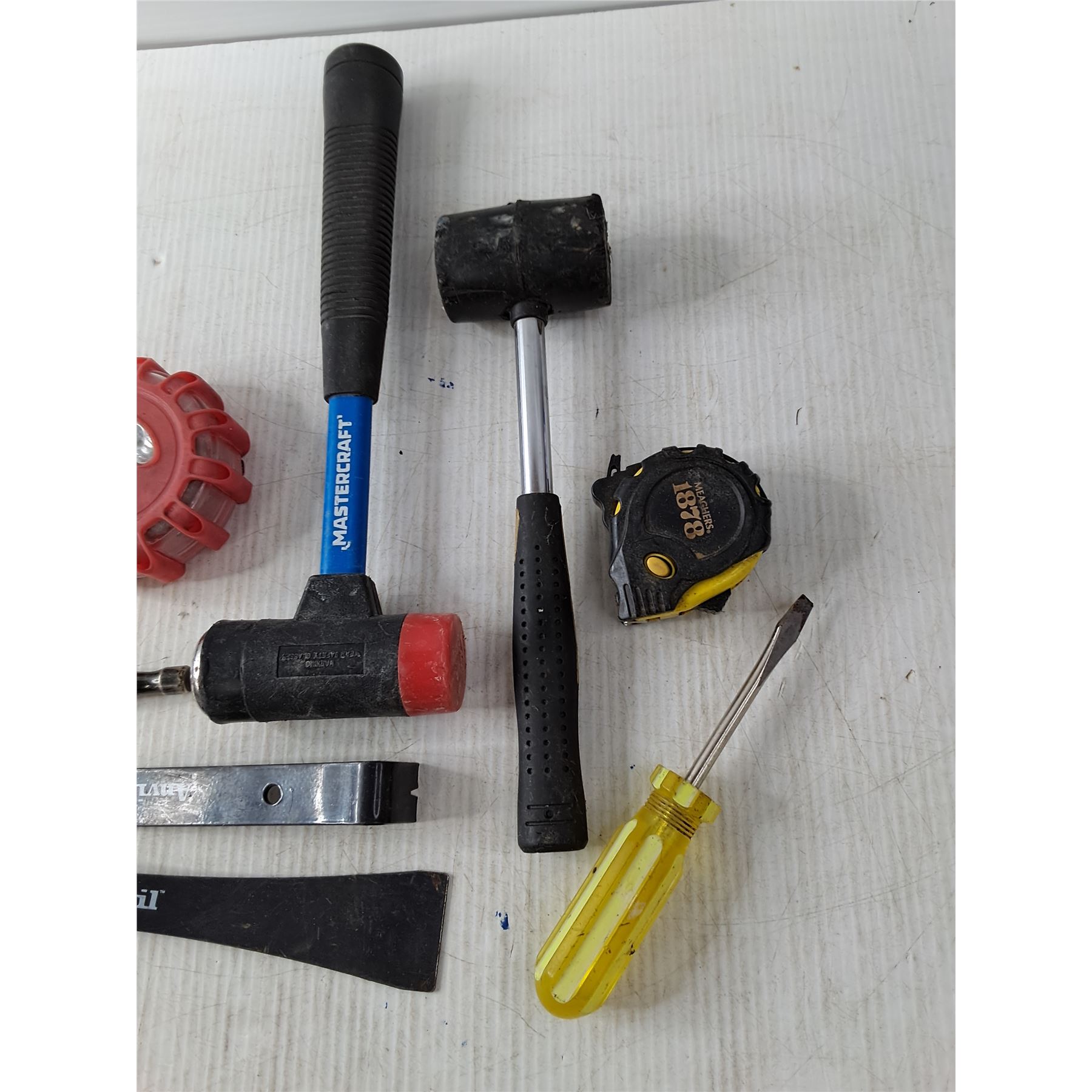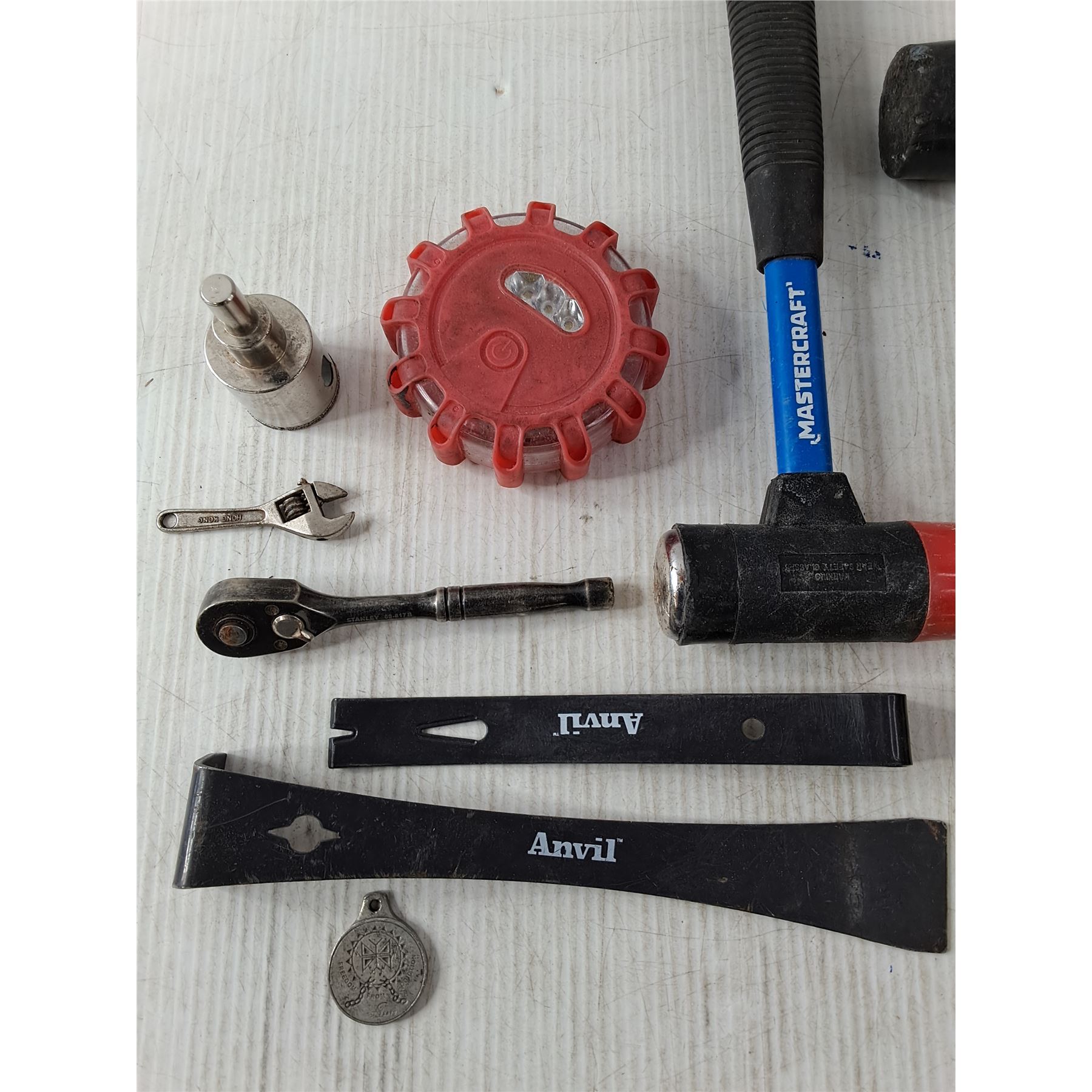 Hammers, Light, Stanley 1/4" drive ratchet, Tape and prybars