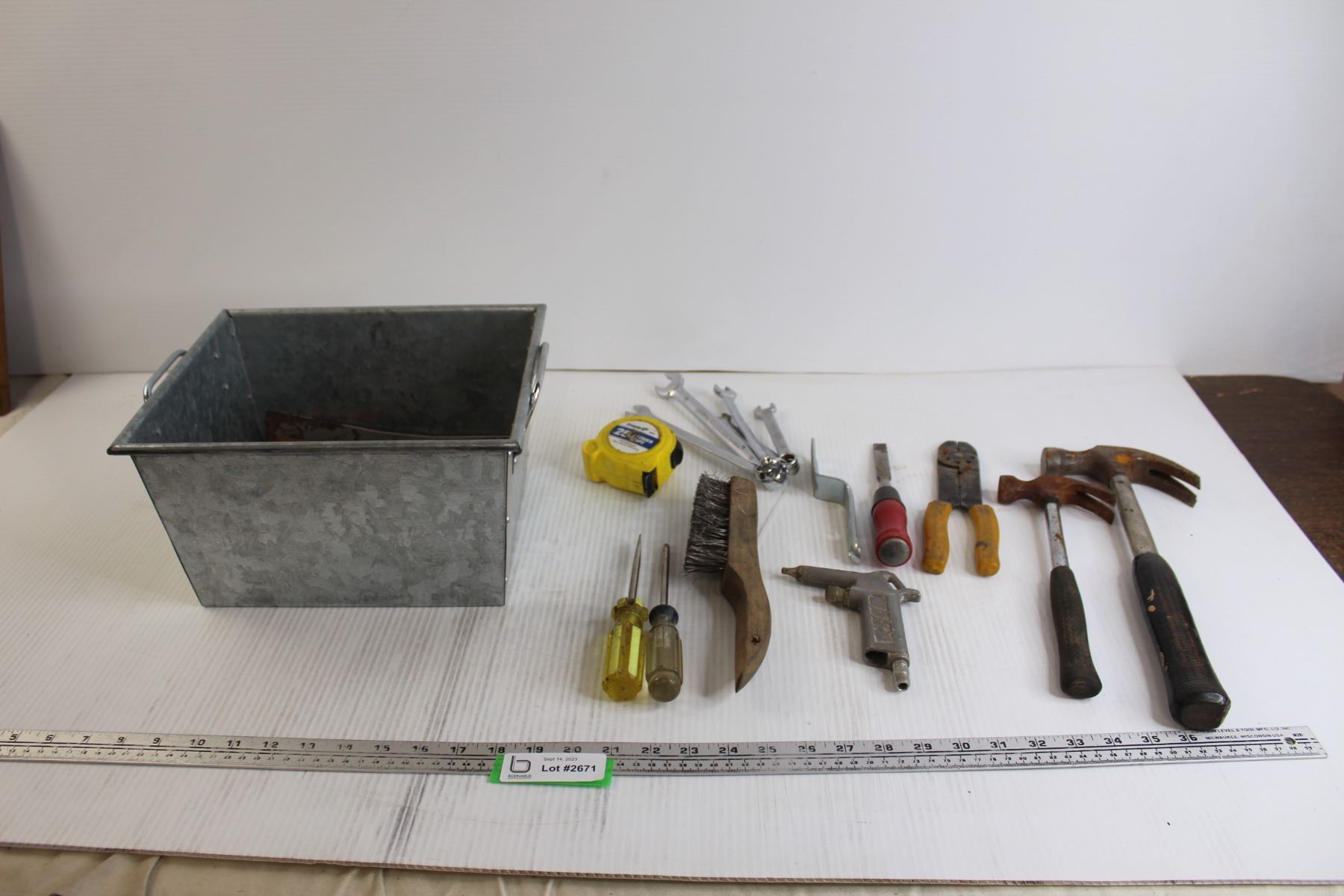 Assorted Tools - (2) Hammers, (5) Wrenches, Measuring Tape, Misc.