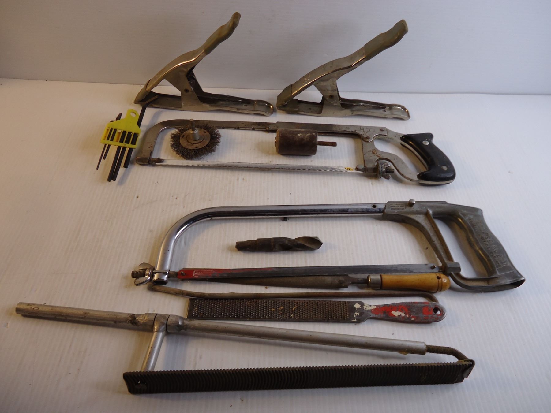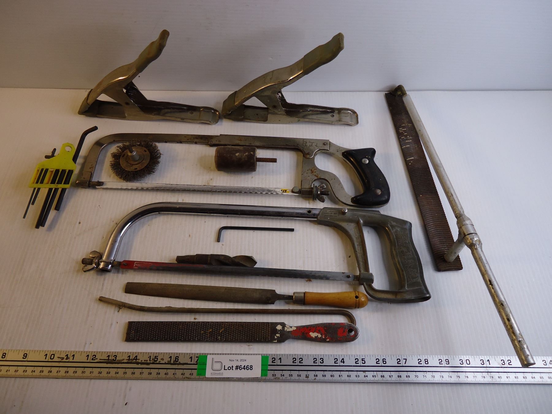 Assorted Tools-Clamps, Hacksaws, Files and Misc. Items
