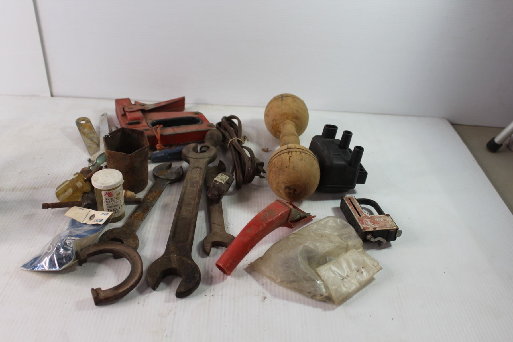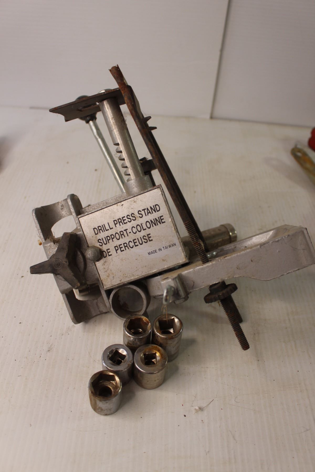 Assorted Tools- Drill Press Stand, Sockets, Misc.