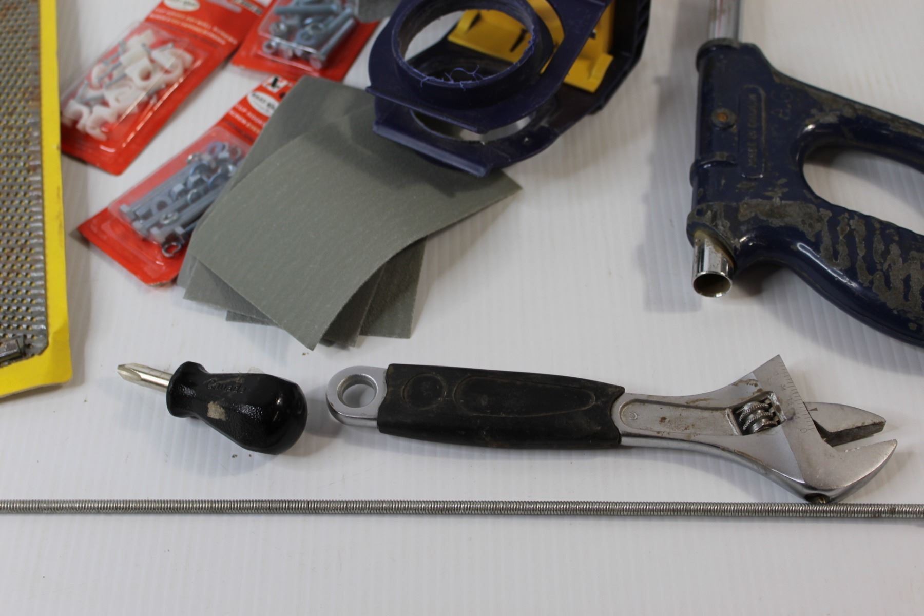 Assorted Tools, Hand Saw, Sandpaper, Misc.