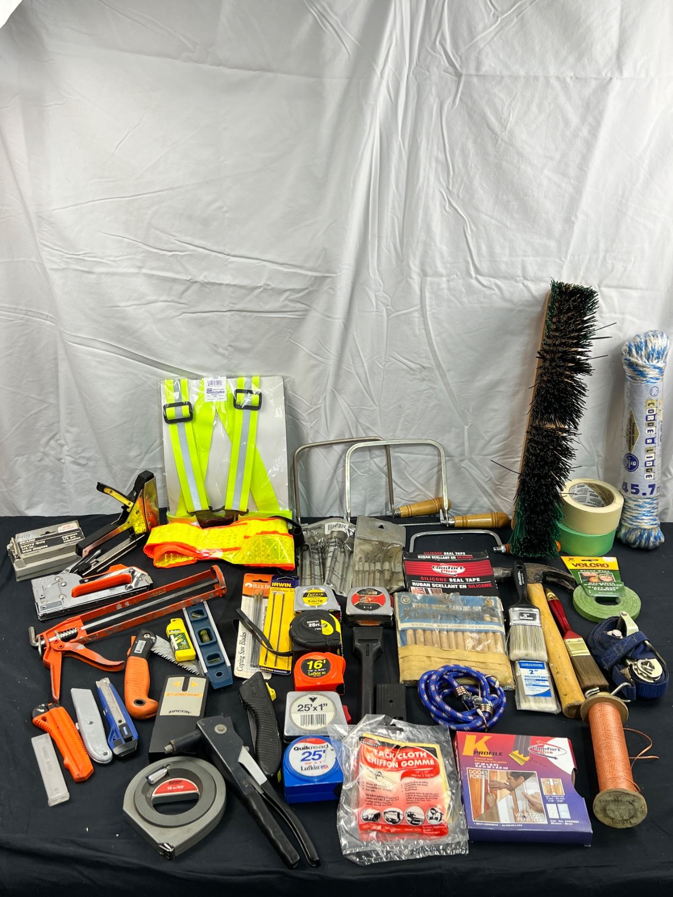 Includes Tape Measures, Hammer, Staplers, Ratchet Strap, Utility Knives & More