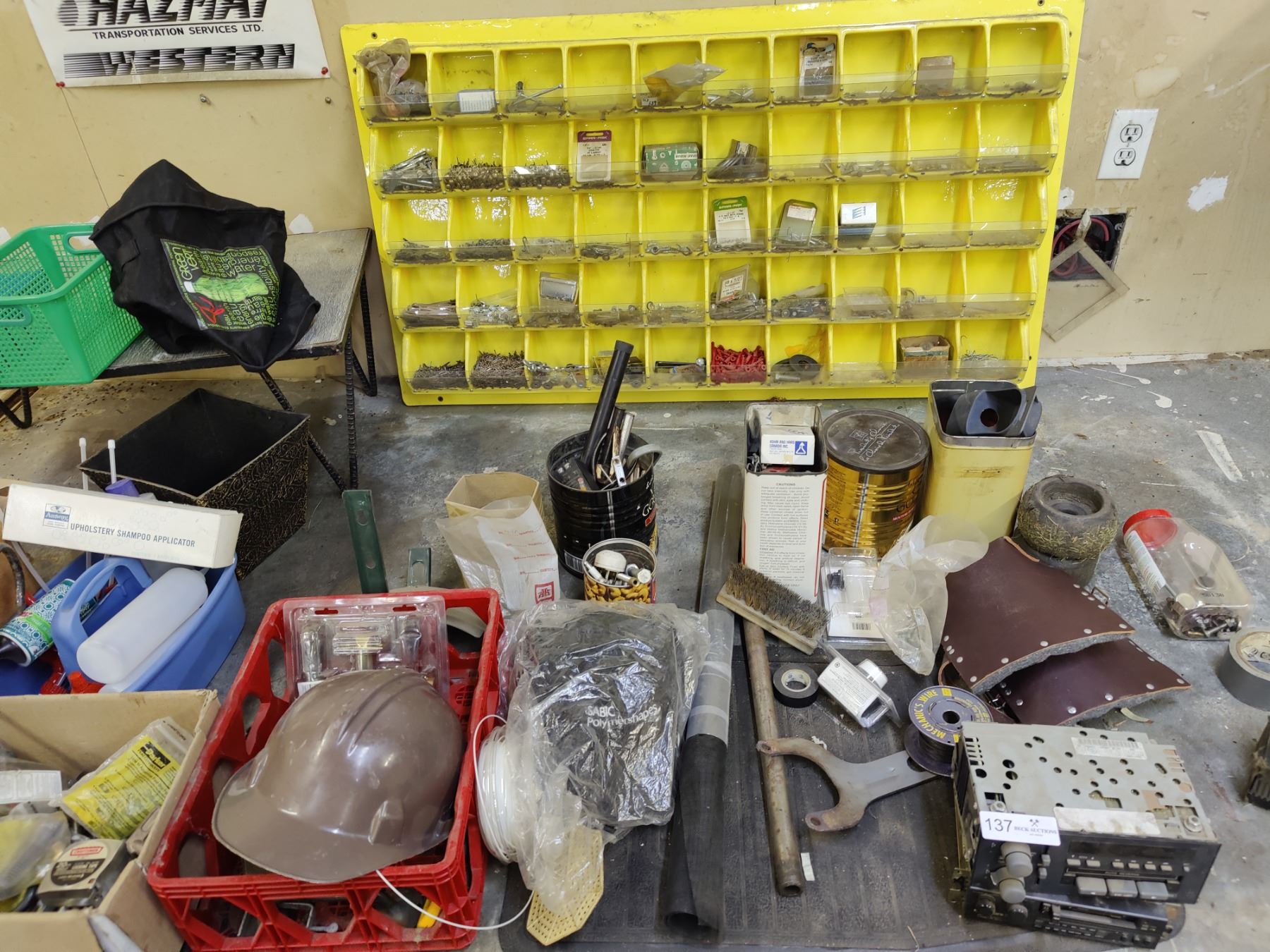 Hardware, hardhat, knee pads, assorted tools & more.