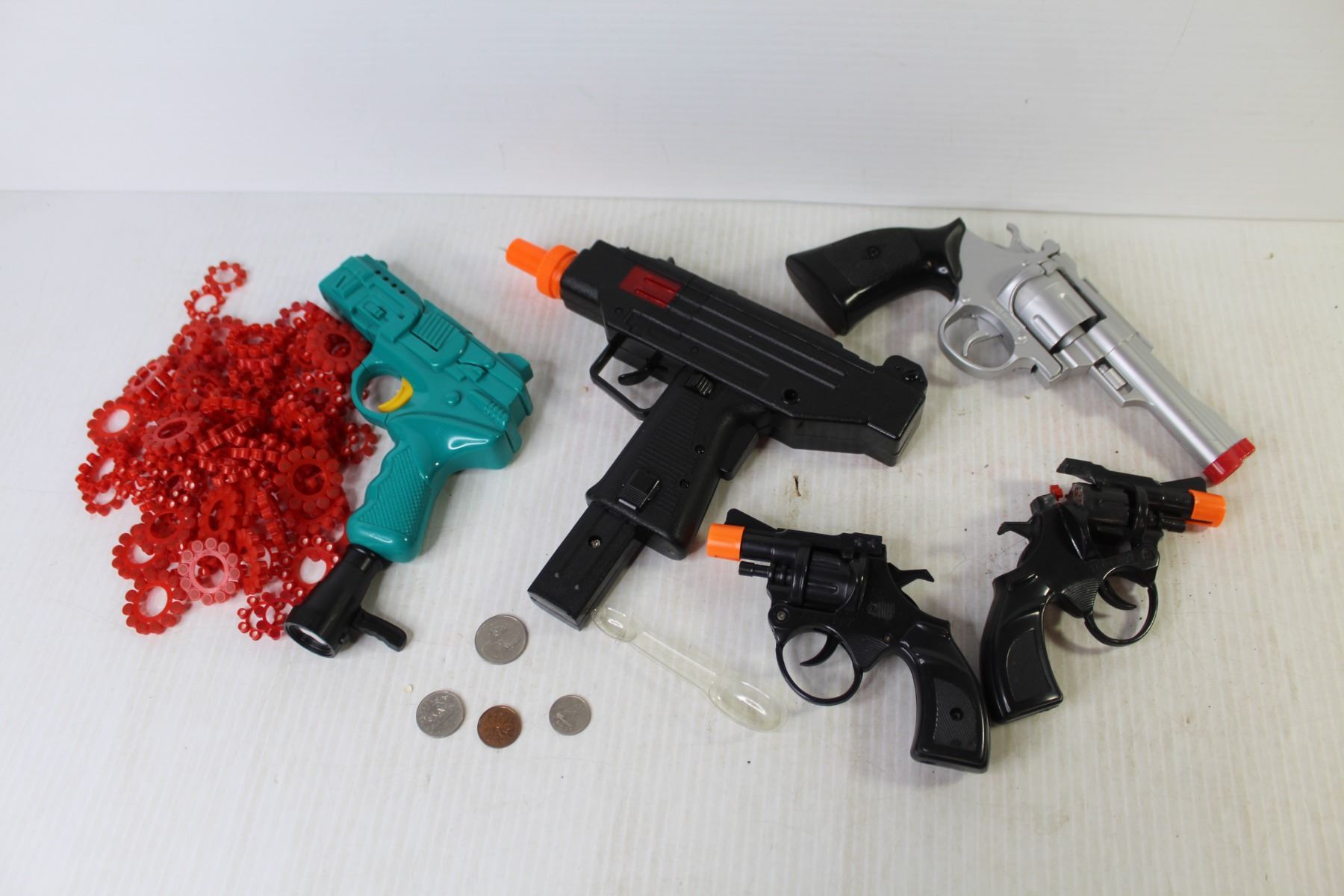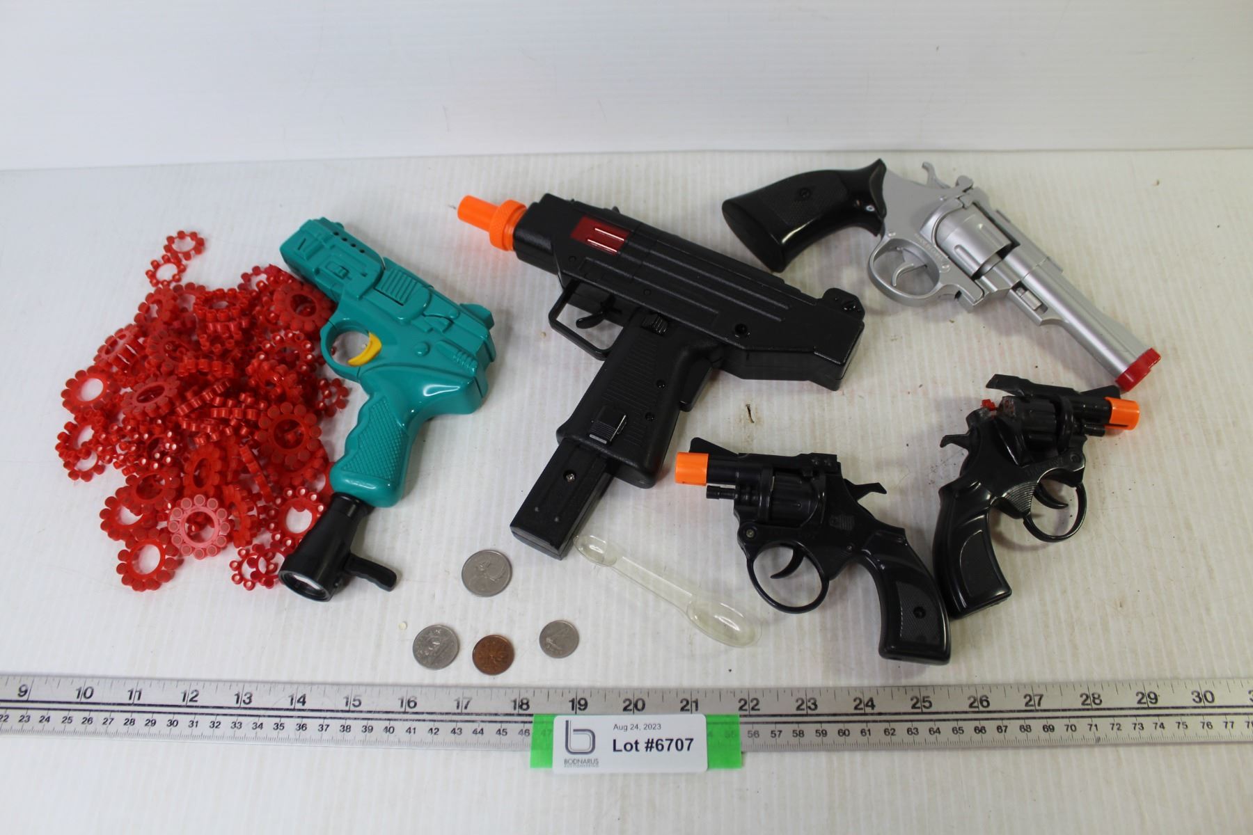 Assorted Toy Cap Guns w/Caps - 41 Cents in Change