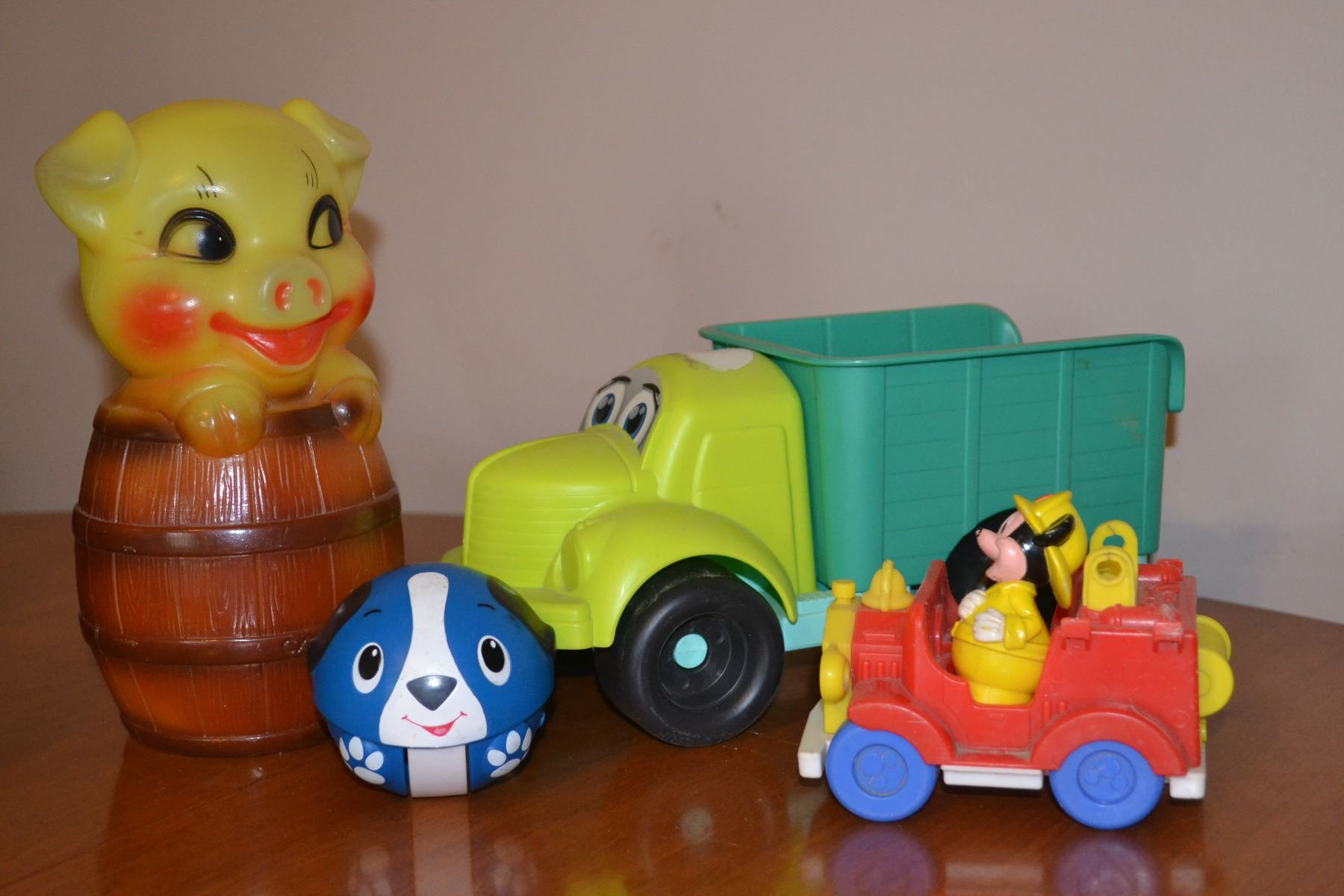 Piggy Bank, Mickey Mouse truck, plastic truck