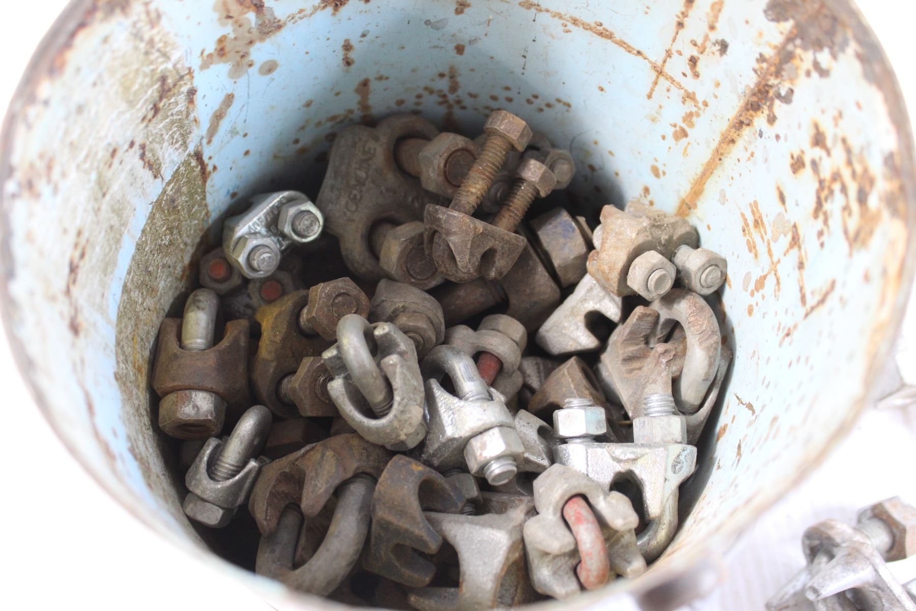 Assorted U-Bolts/Cable Clamps in Tin Can