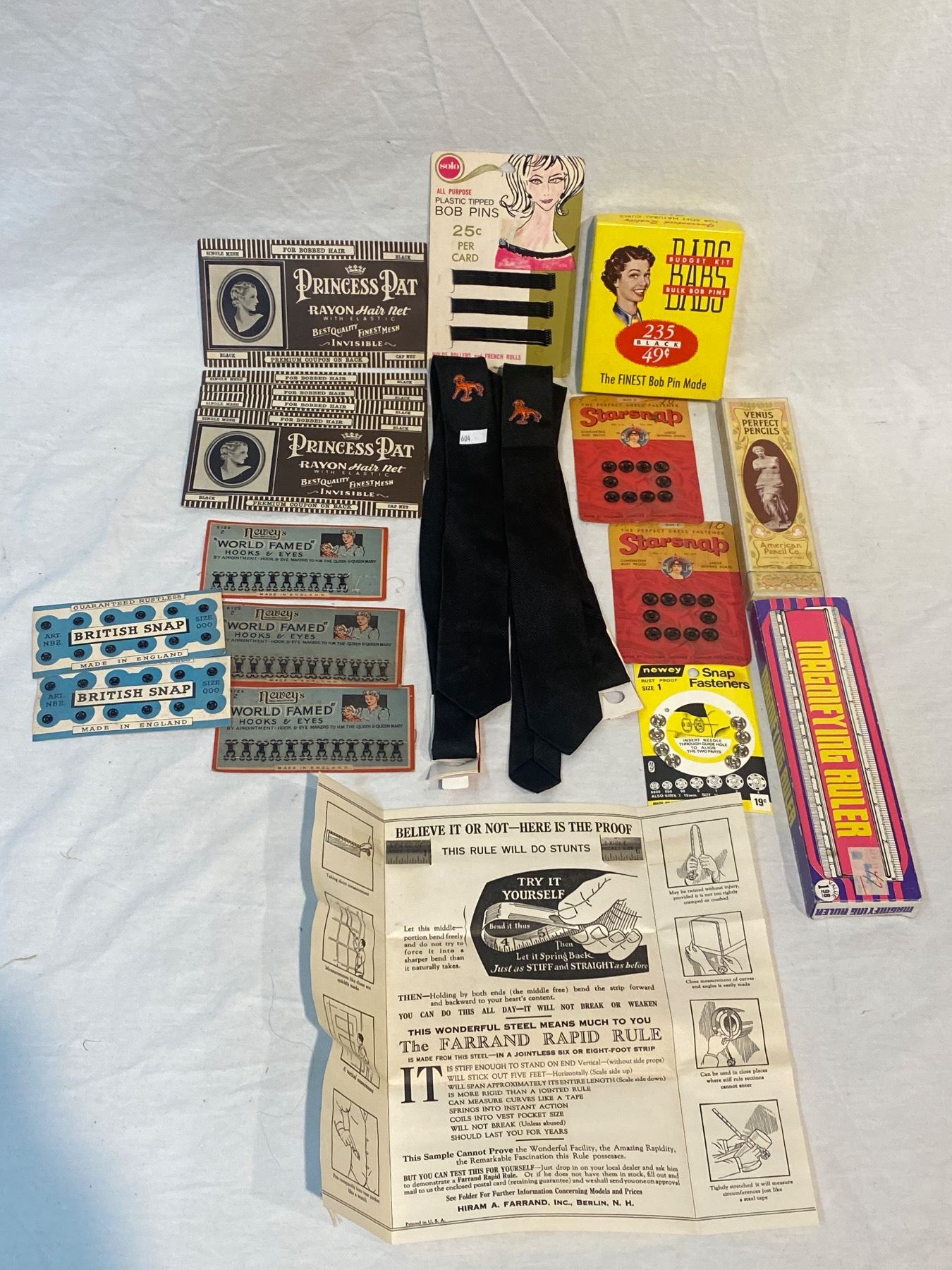 Assorted Vintage Bobby Pins, Magnifying Ruler, Etc..