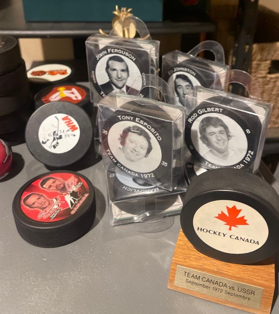 Assorted Vintage Collectors Hockey Pucks