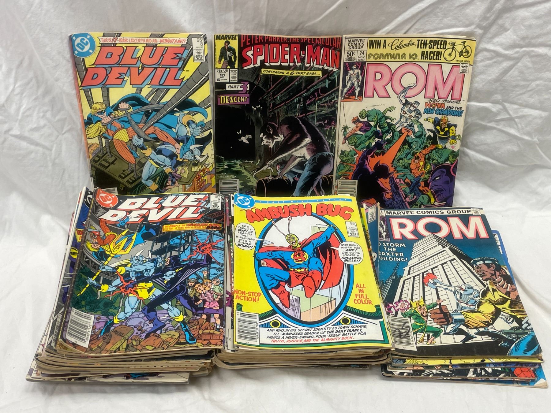 Assorted Vintage Comics, Armor, Rom, The Amazing Spiderman, The Invaders, Etc..