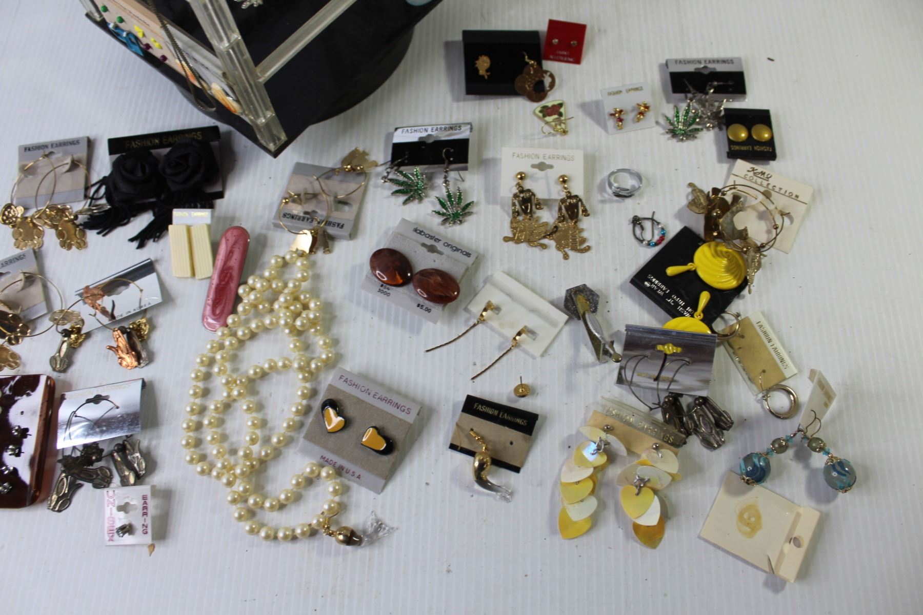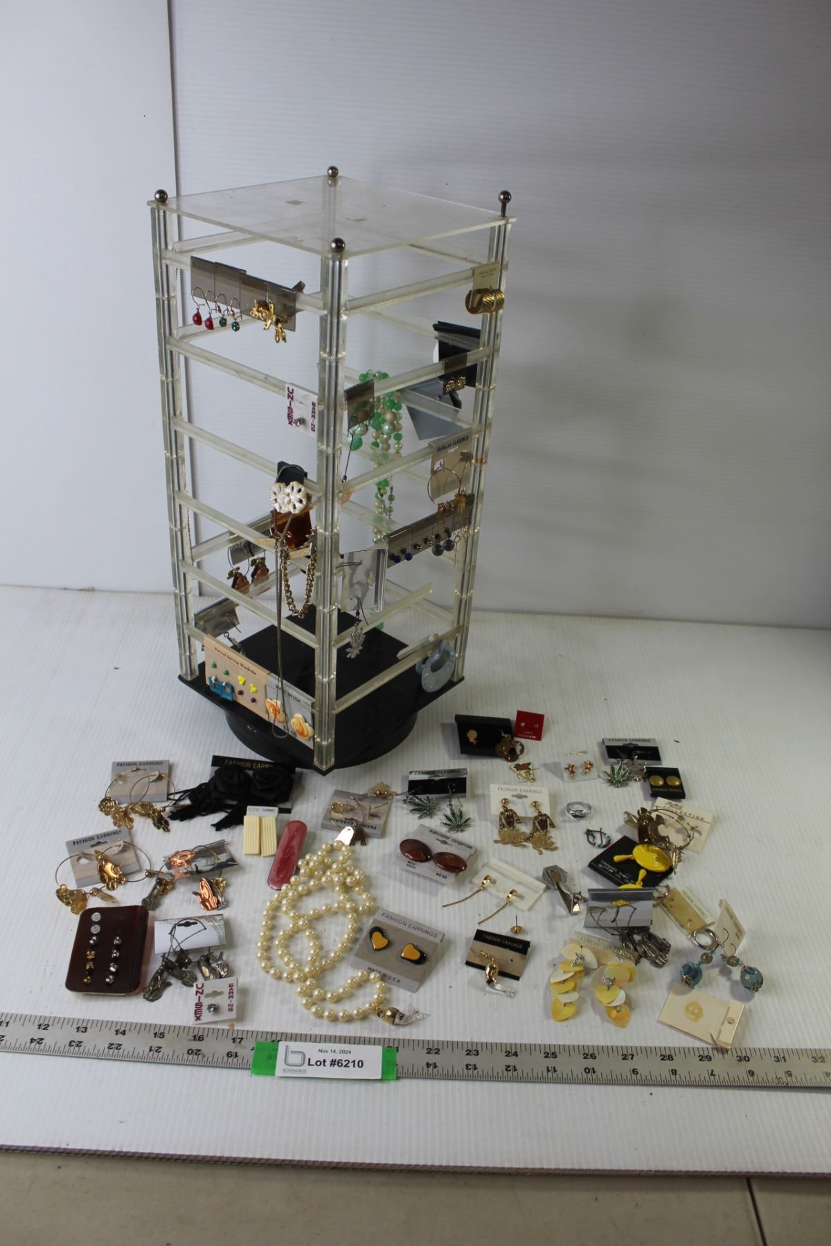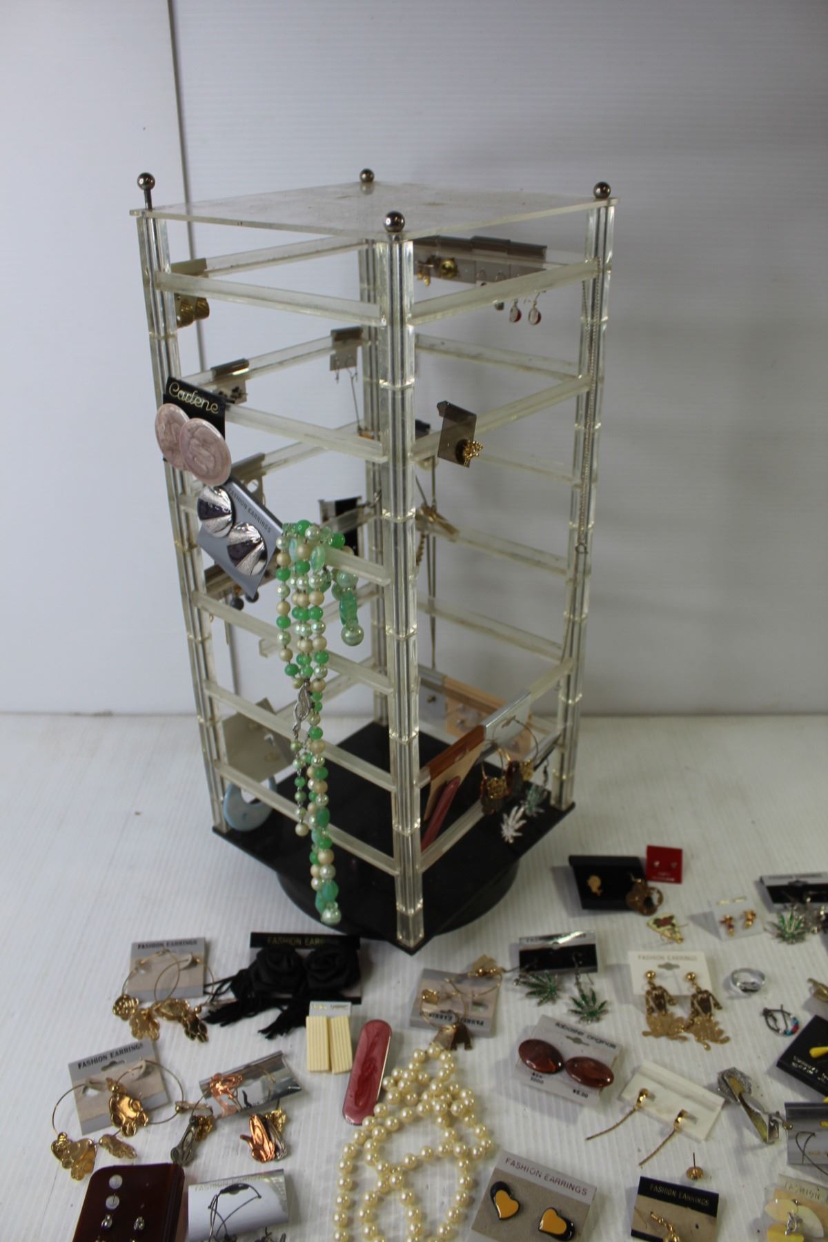 Assorted Vintage Costume Jewelry (Ear Rings, Necklaces, Rings), Rotational Jewelry Tree