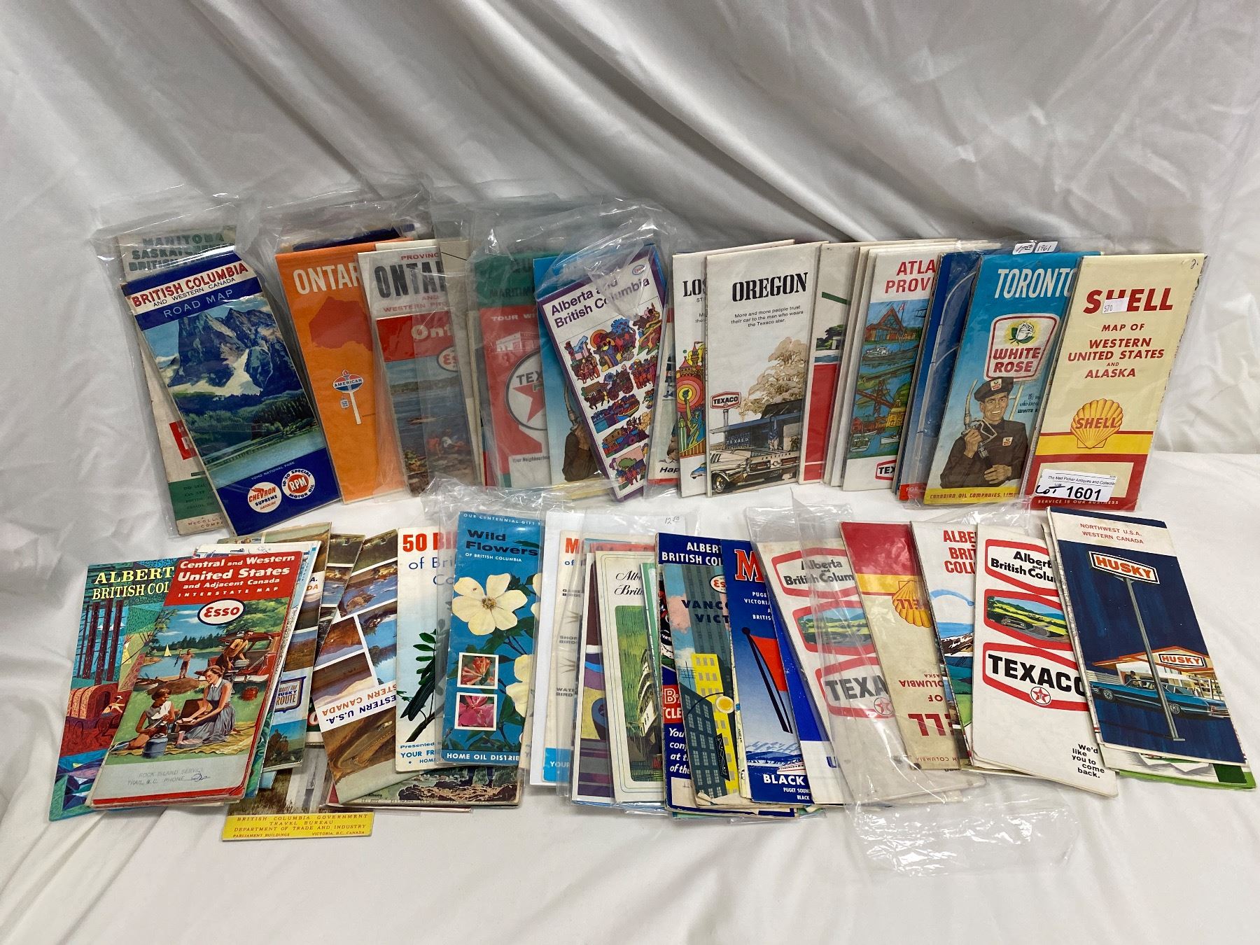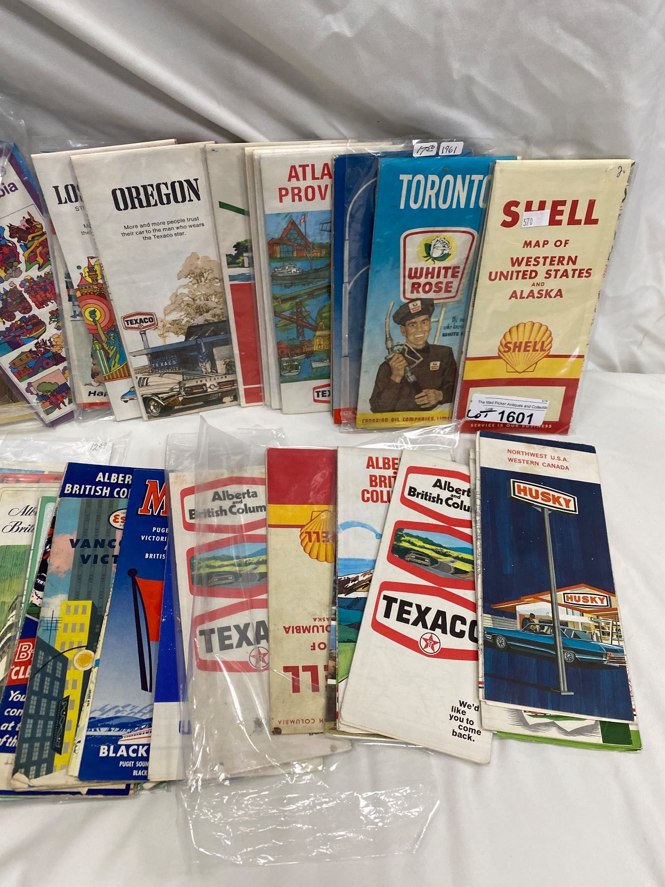 Assorted Vintage Gas Station Road Maps, Texaco, Shell, White Rose, Etc..