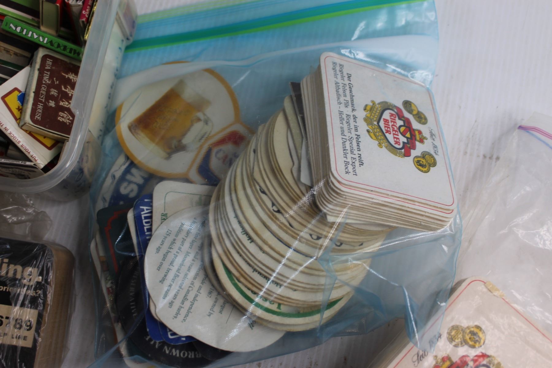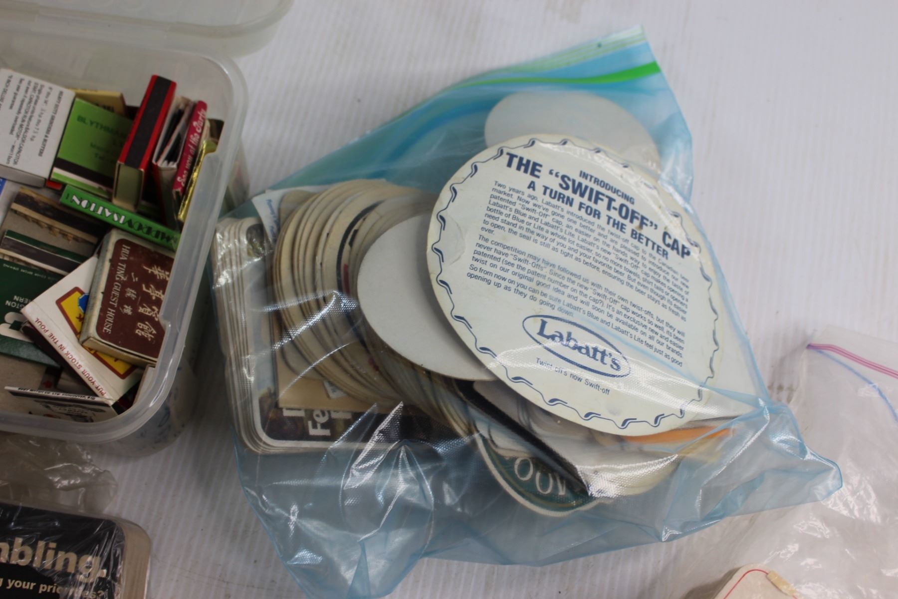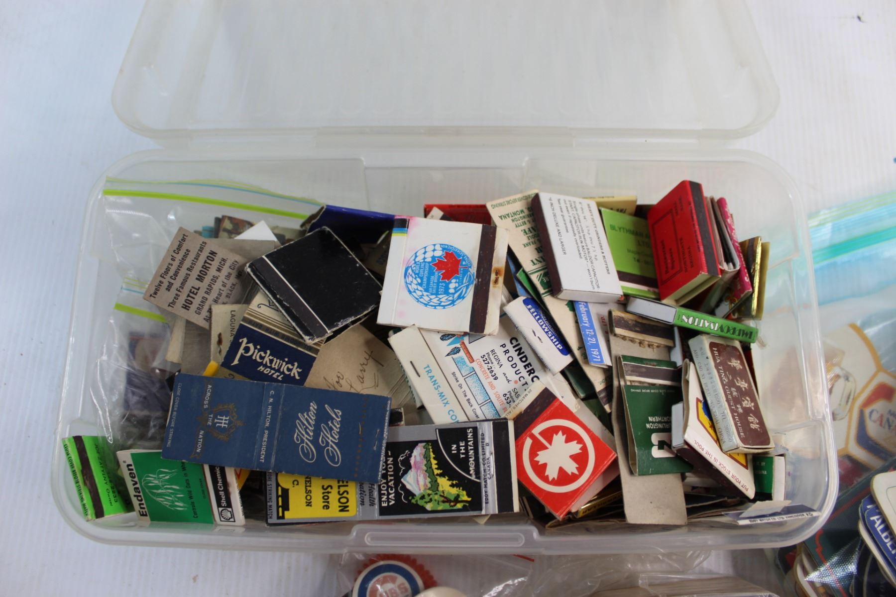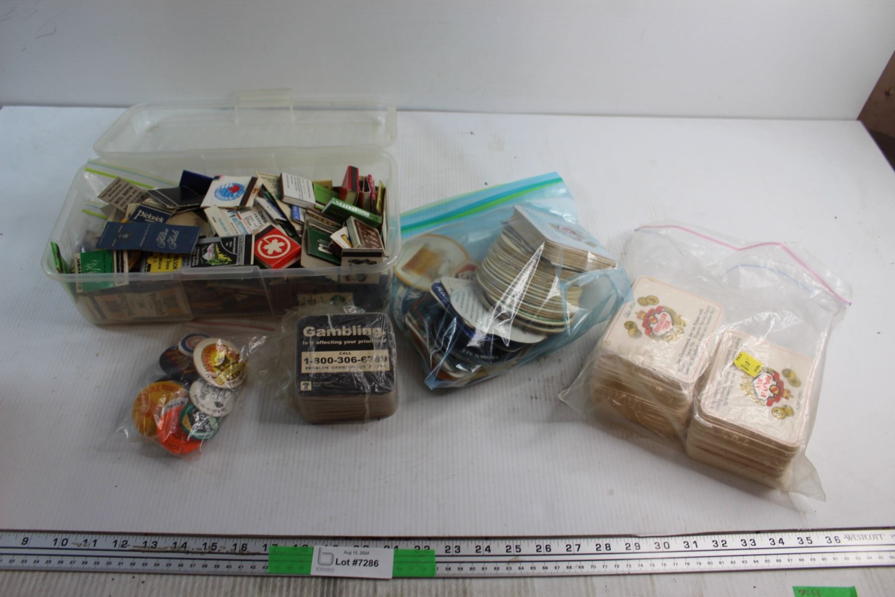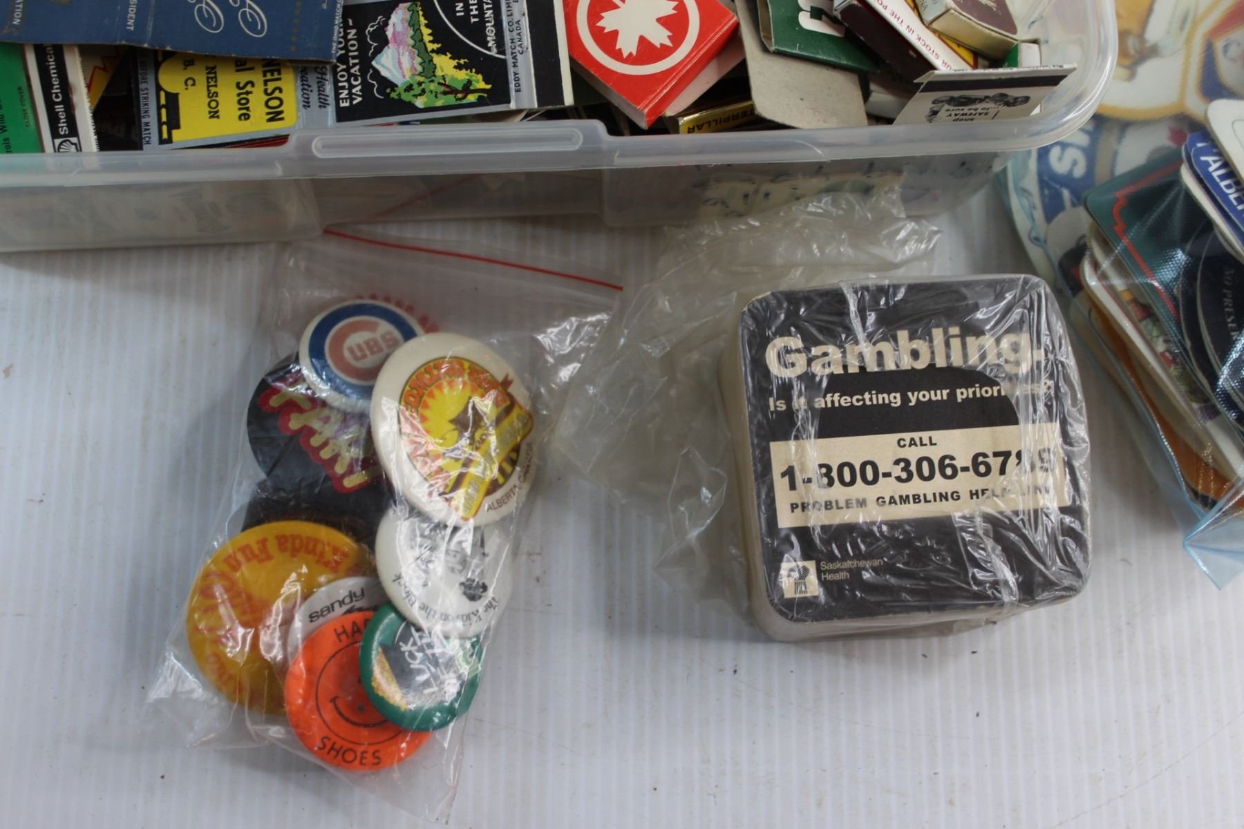 Lot of Assorted Vintage Match Boxes and Books, Assorted Coasters and Assorted Pins
