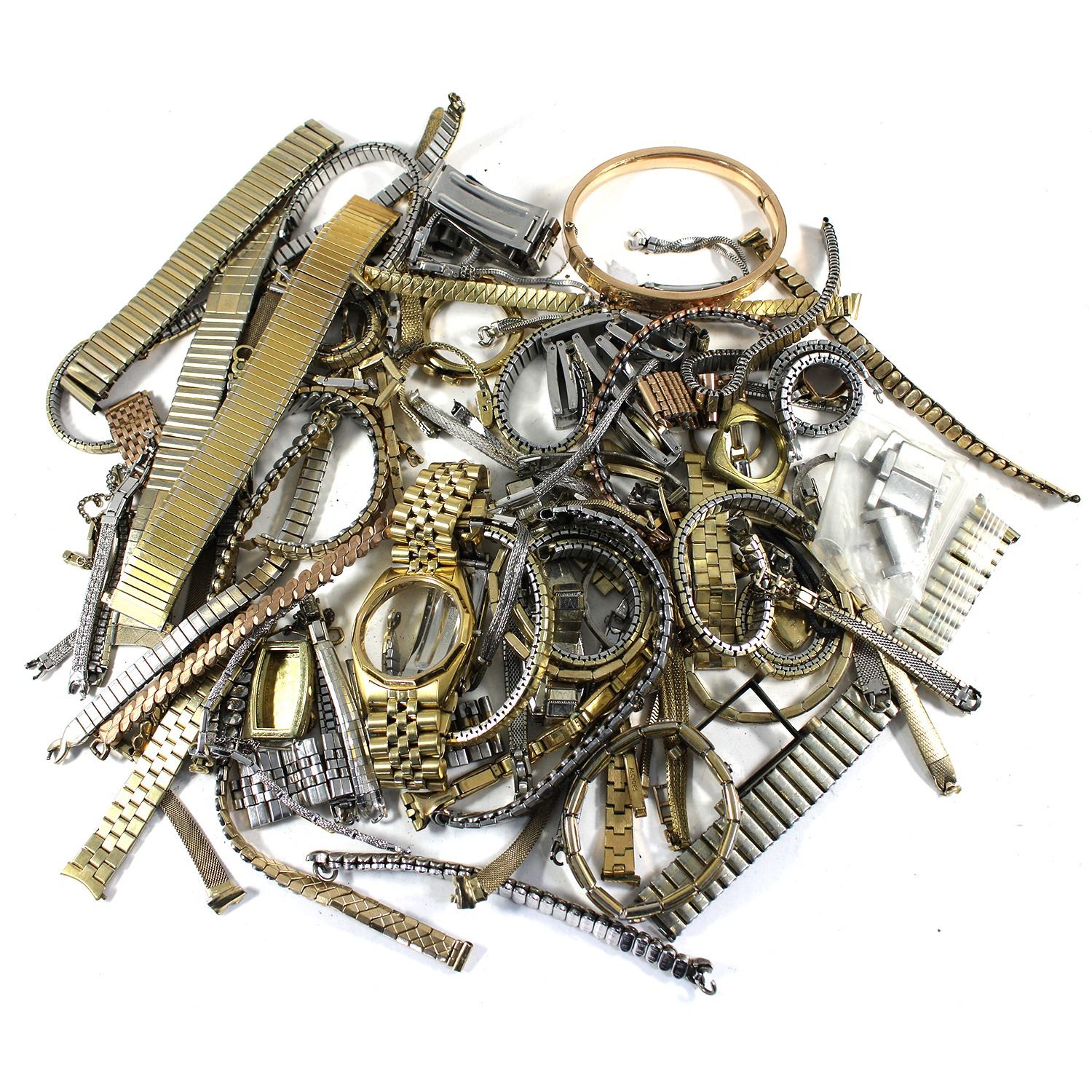 American and Swiss. 1940s-1980s. Assorted bands. Gold filled, gold plated and stainless steel 788 grams.