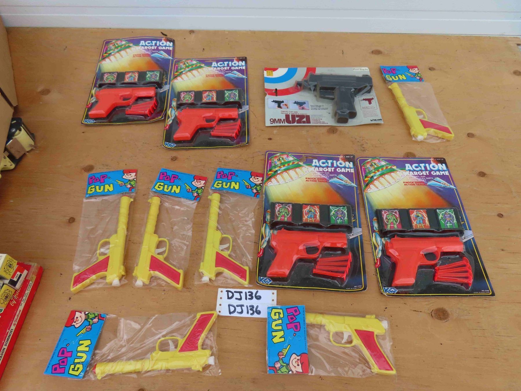 Assorted Vintage New on Cards Toy Guns , Action Target Game , Pop Gun , Uzi