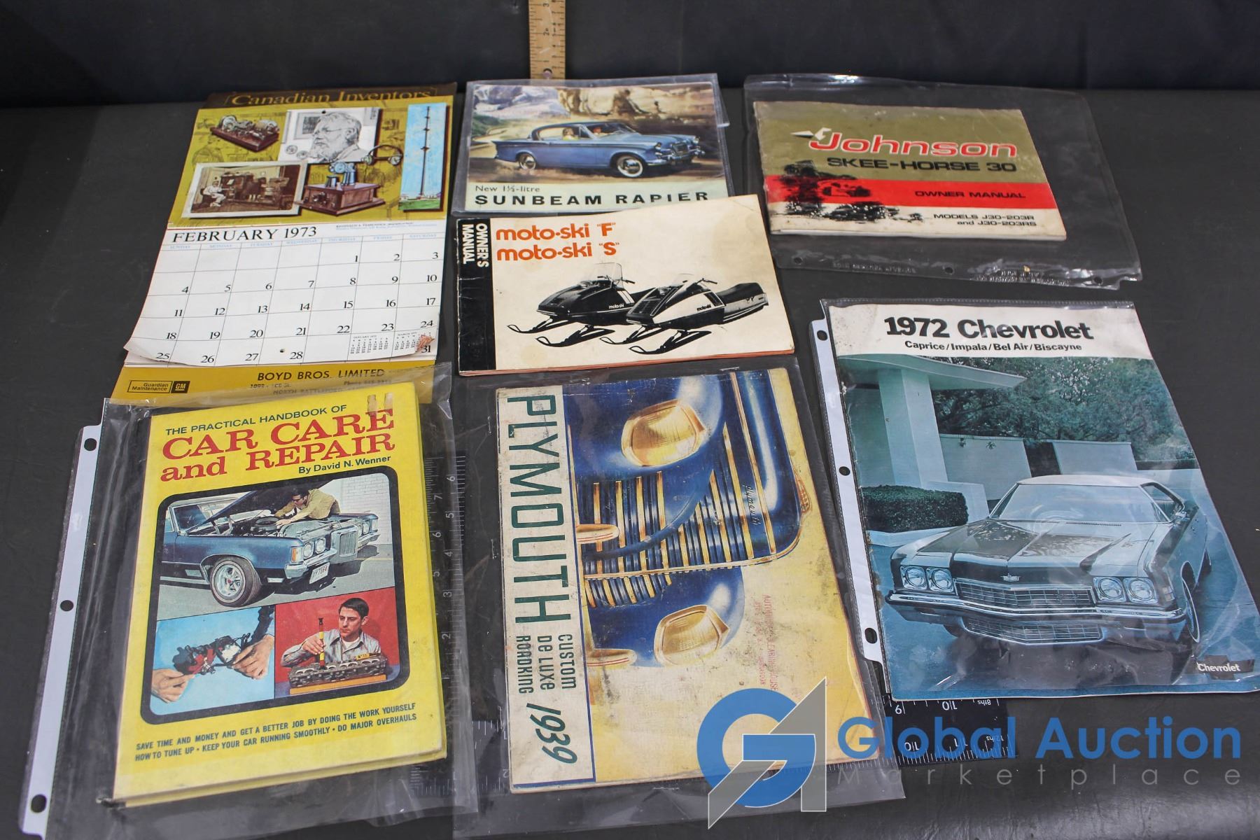 1939 Plymouth Brochure; 1972 Chevie Brochure; Motoski - Johnson; Sunbeam Rapier; Car Repair & 1973 Canadian Inventors Calendar (GMC)