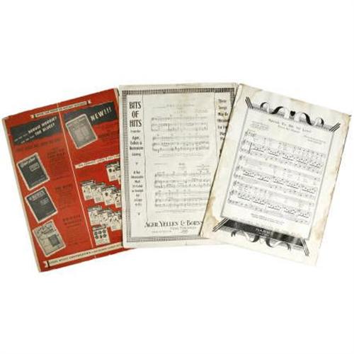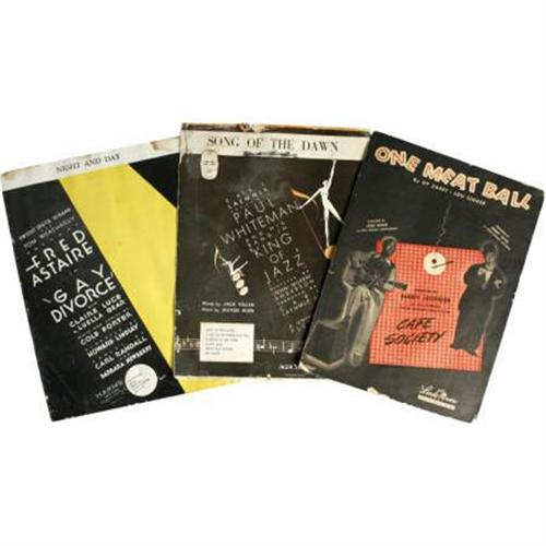 <B>Various Vintage Sheet Music.</B></I> Includes vintage copies of the published sheet music for "One Meat Ball," "The King of Jazz," and "Gay Divorcee." In overall Very Good to Fine condition with moderate to heavy wear.<BR><BR><b>Shipping:</b> Requires 3rd Party Shipping (<a target="_blank" href="http://www.heritageauctions.com/common/shipping.php">view shipping information</a>)