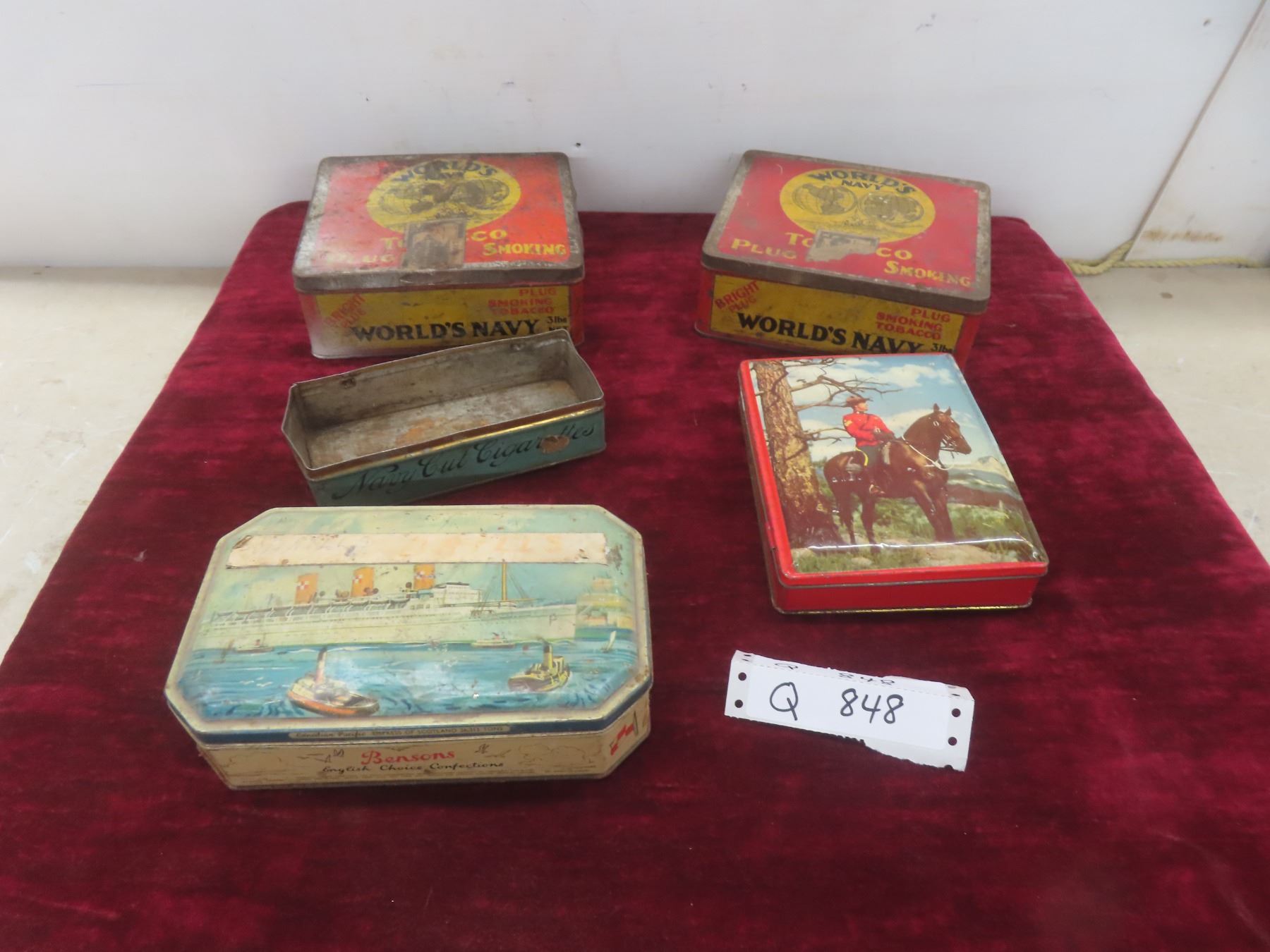 Assorted Vintage Tobacco Tins—World's Navy, Navy Cut, and Candy Tins