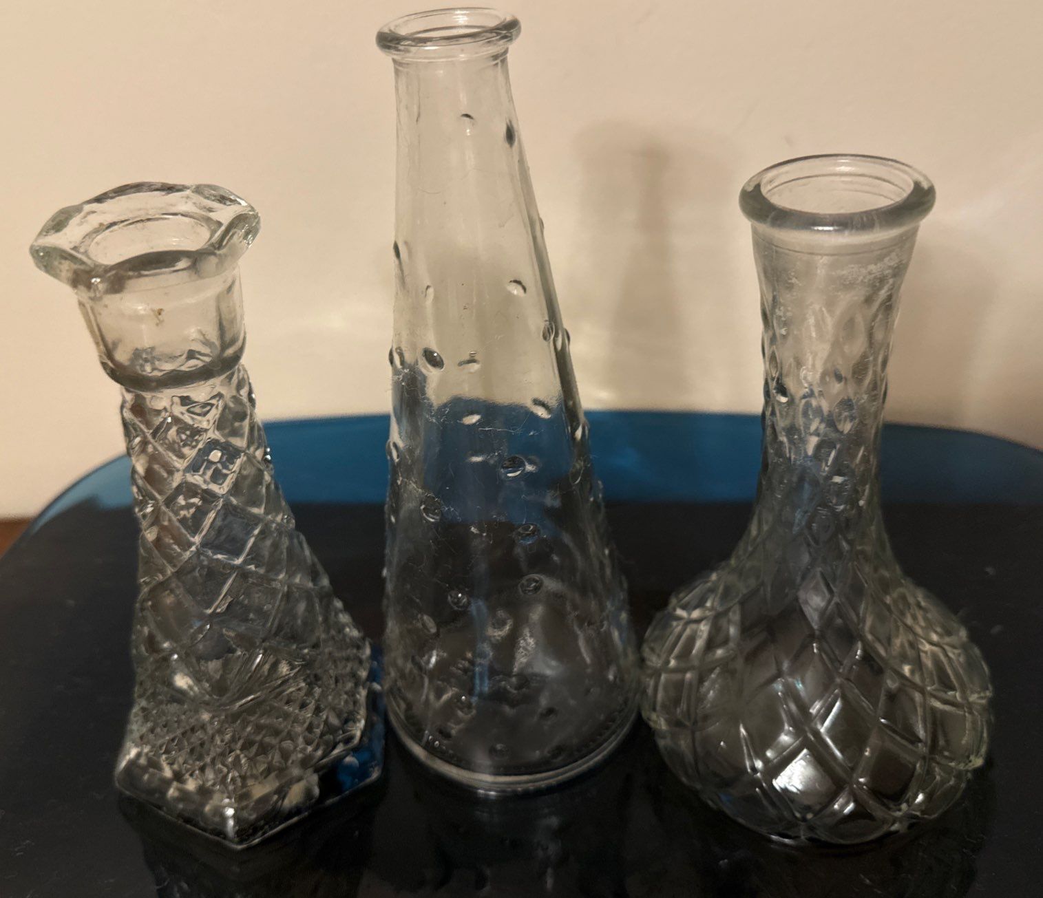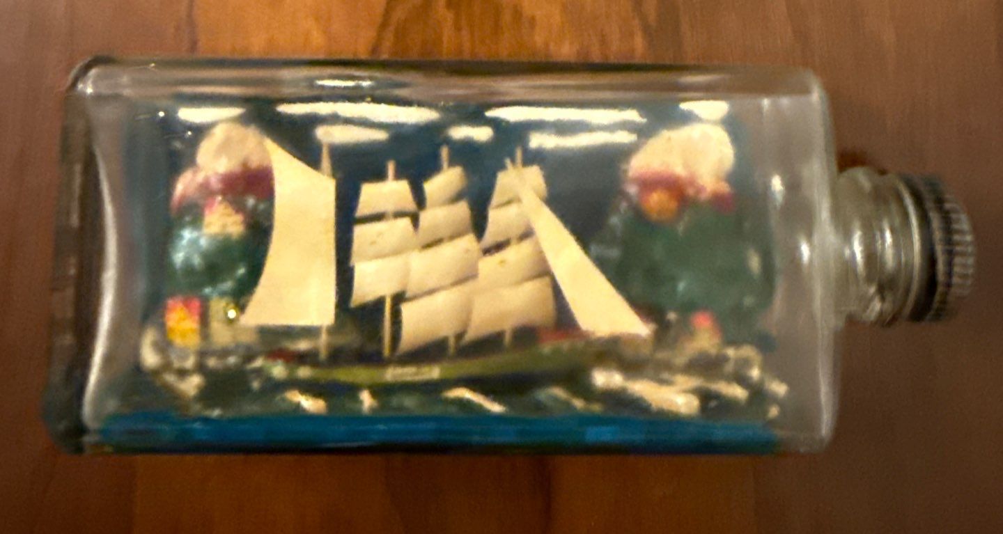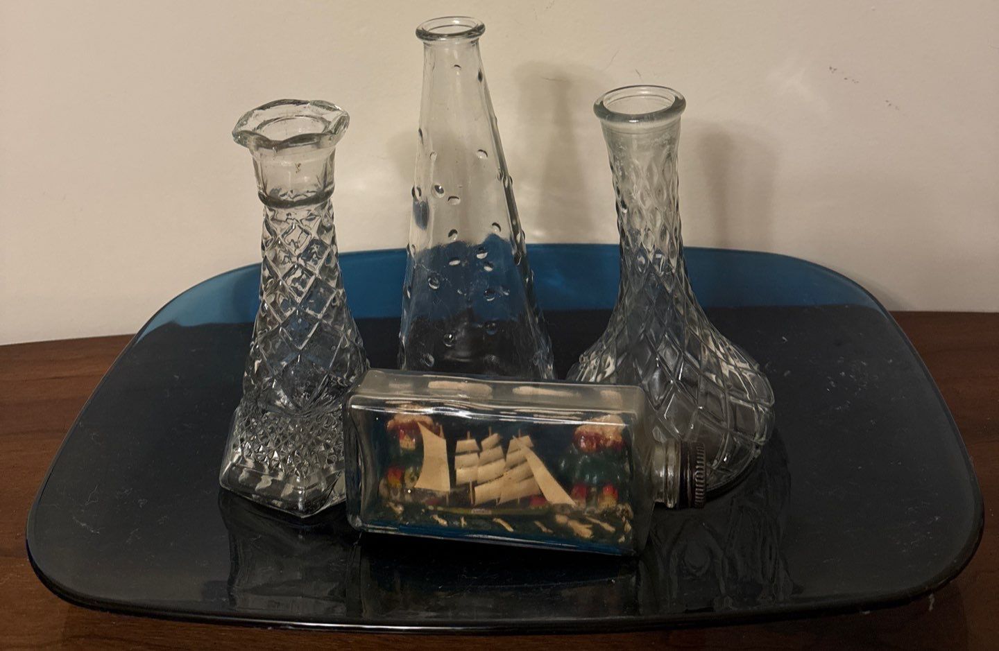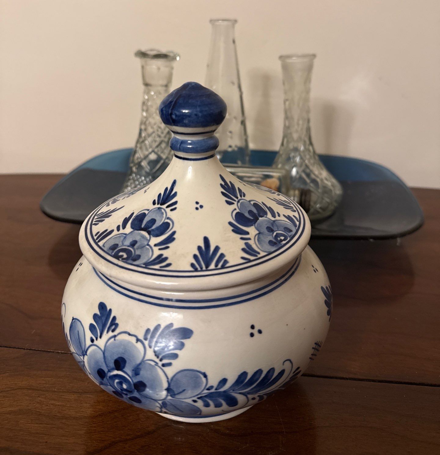 Assorted Vintage Vases, Blue Serving Plate, Mini Ship in A Bottle & Delpft Jar w/Lid