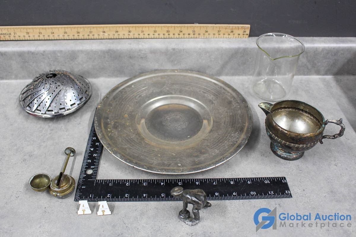 Viking Plate E.P. Copper Creamer, Oil Lamp Part, Strainer