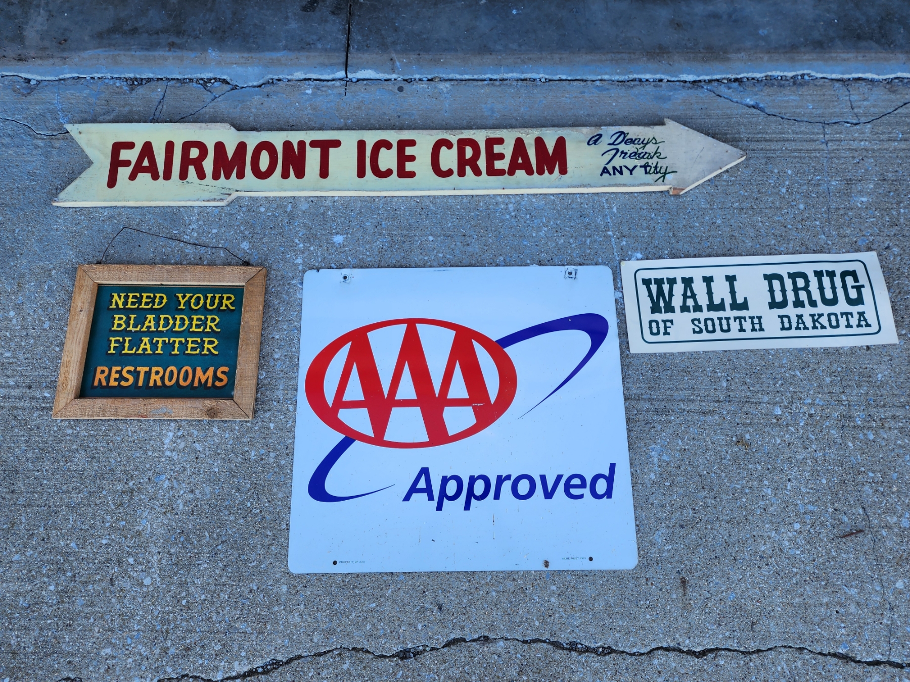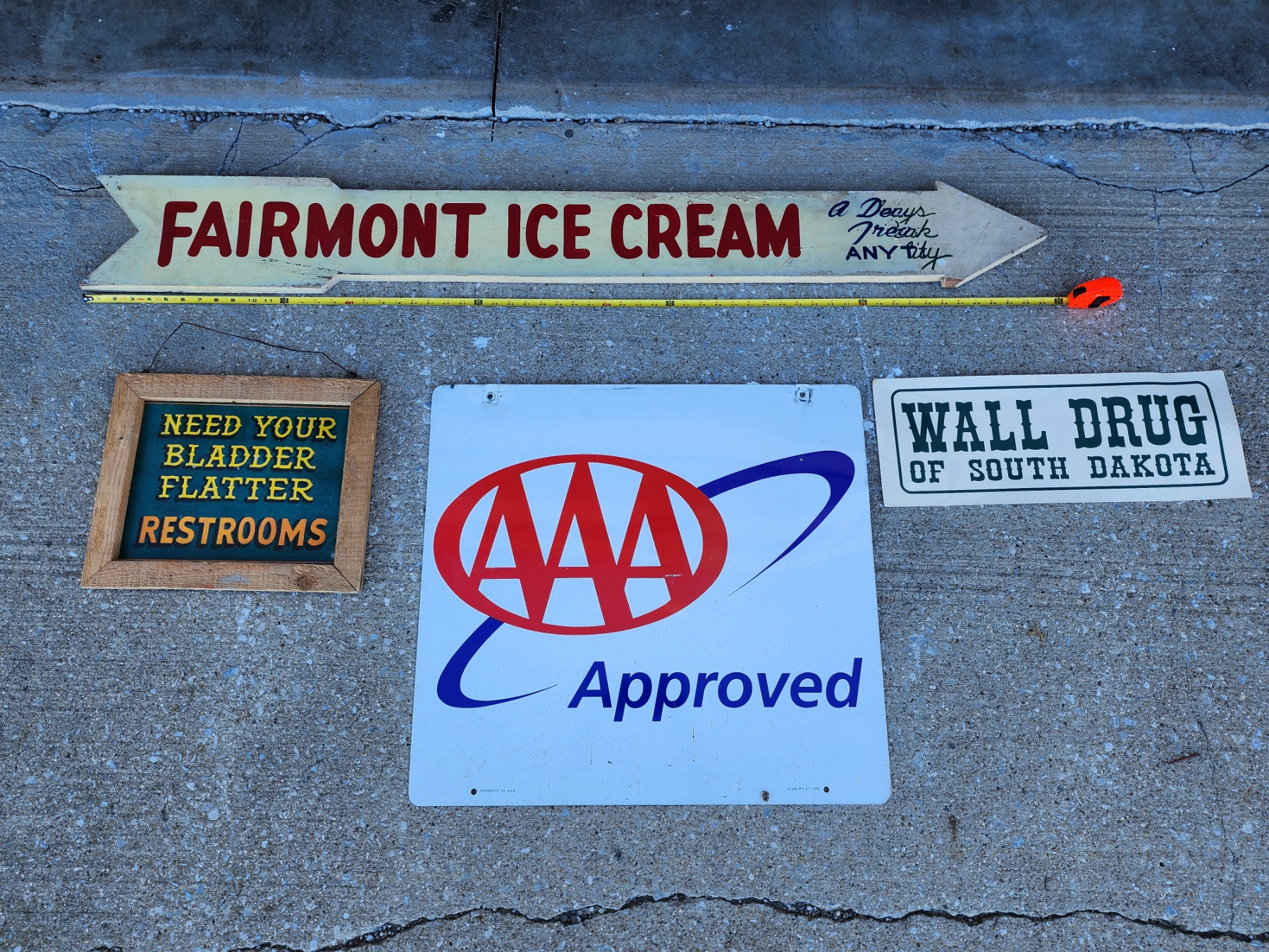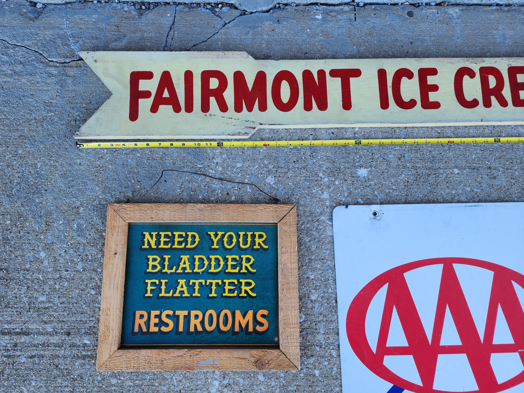 Assorted Wall Signs Including Large 5ft Fairmont Ice Cream Arrow Sign