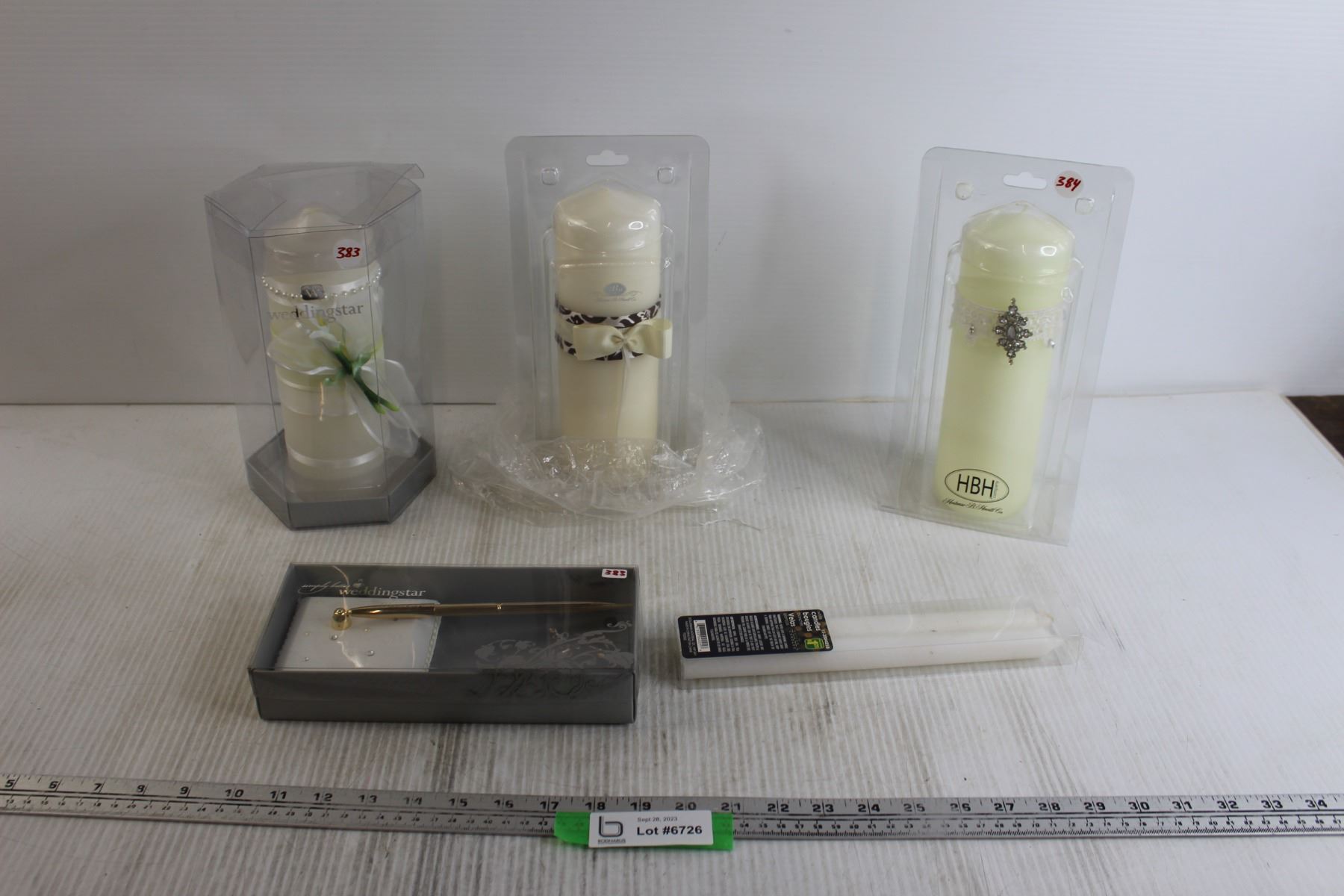 Assorted Wedding Items - (4) Candles, Wedding Pen Set