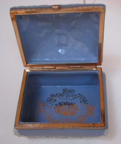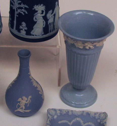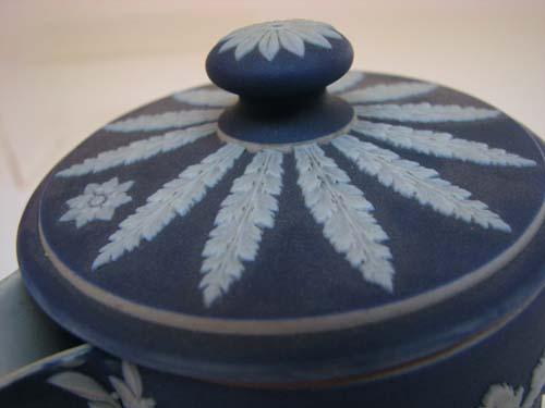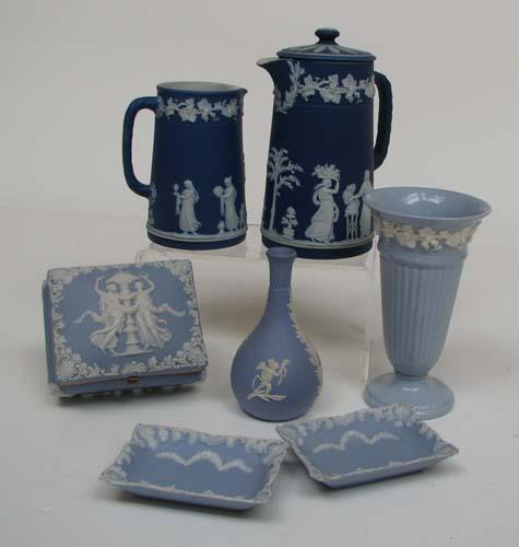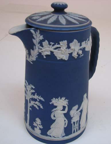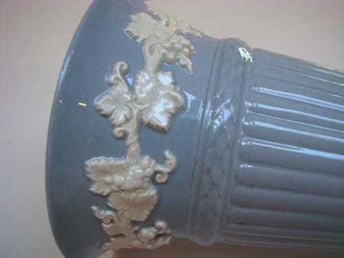 Description: all various shades of Wedgewood blue with white embossed grape vines and images of ancient Roman figures