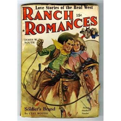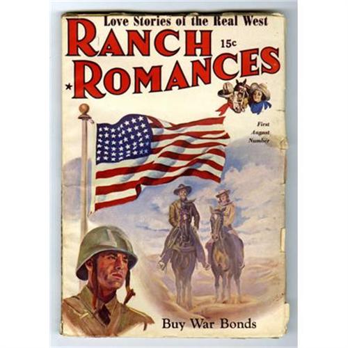 <B>Assorted Western Romance Pulps Group (Various Publishers, 1942-48) Condition: Average VG.</B></I> Includes the September 1948 issue of <B>Rangeland Romances</B></I>; and the first July (bondage cover) and second October 1942; first August (flag/war bonds cover), second September, second October, and first December 1943; the second January and second February 1944, and first September 1948 (GD) issues of <B>Ranch Romances</B></I>. Approximate Bookery's Guide to Pulps value for group = $50.<BR><BR><b>Shipping:</b> Comics - Unslabbed (<a target="_blank" href="http://www.heritageauctions.com/common/shipping.php">view shipping information</a>)